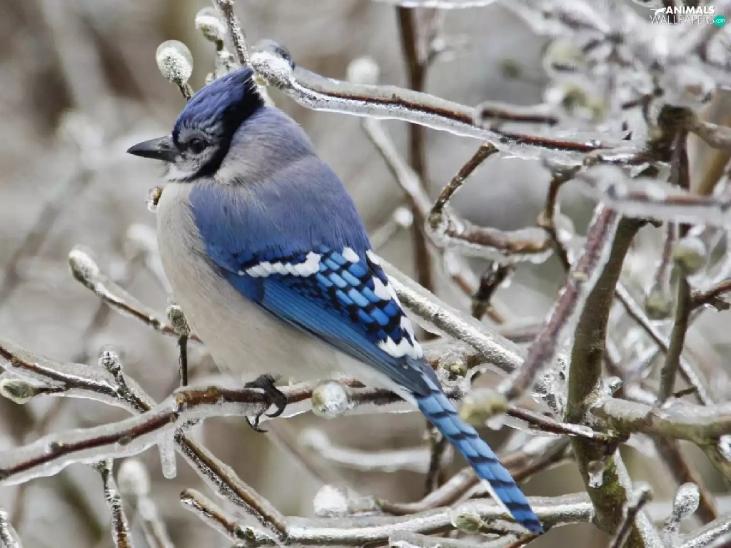 blue, icy, Twigs, Bird