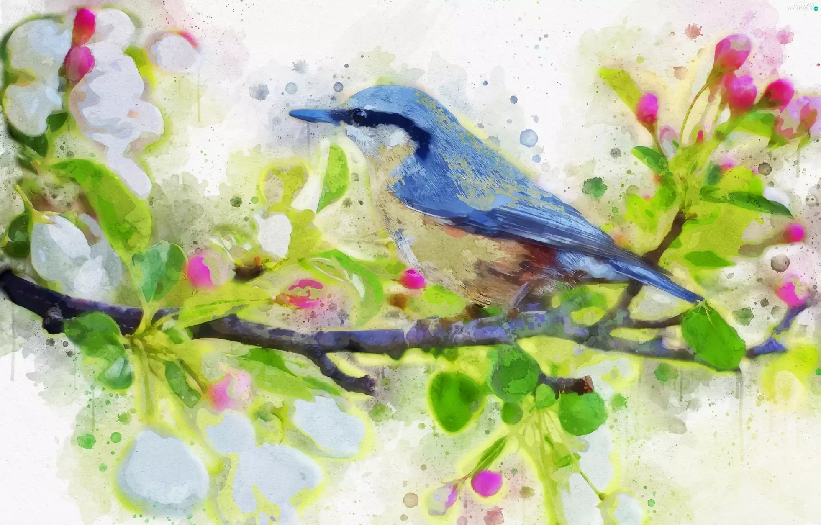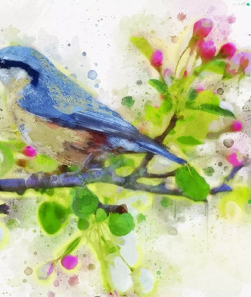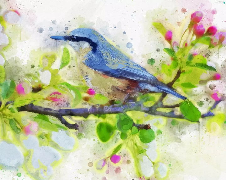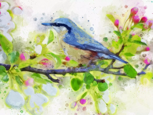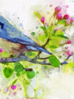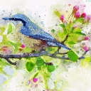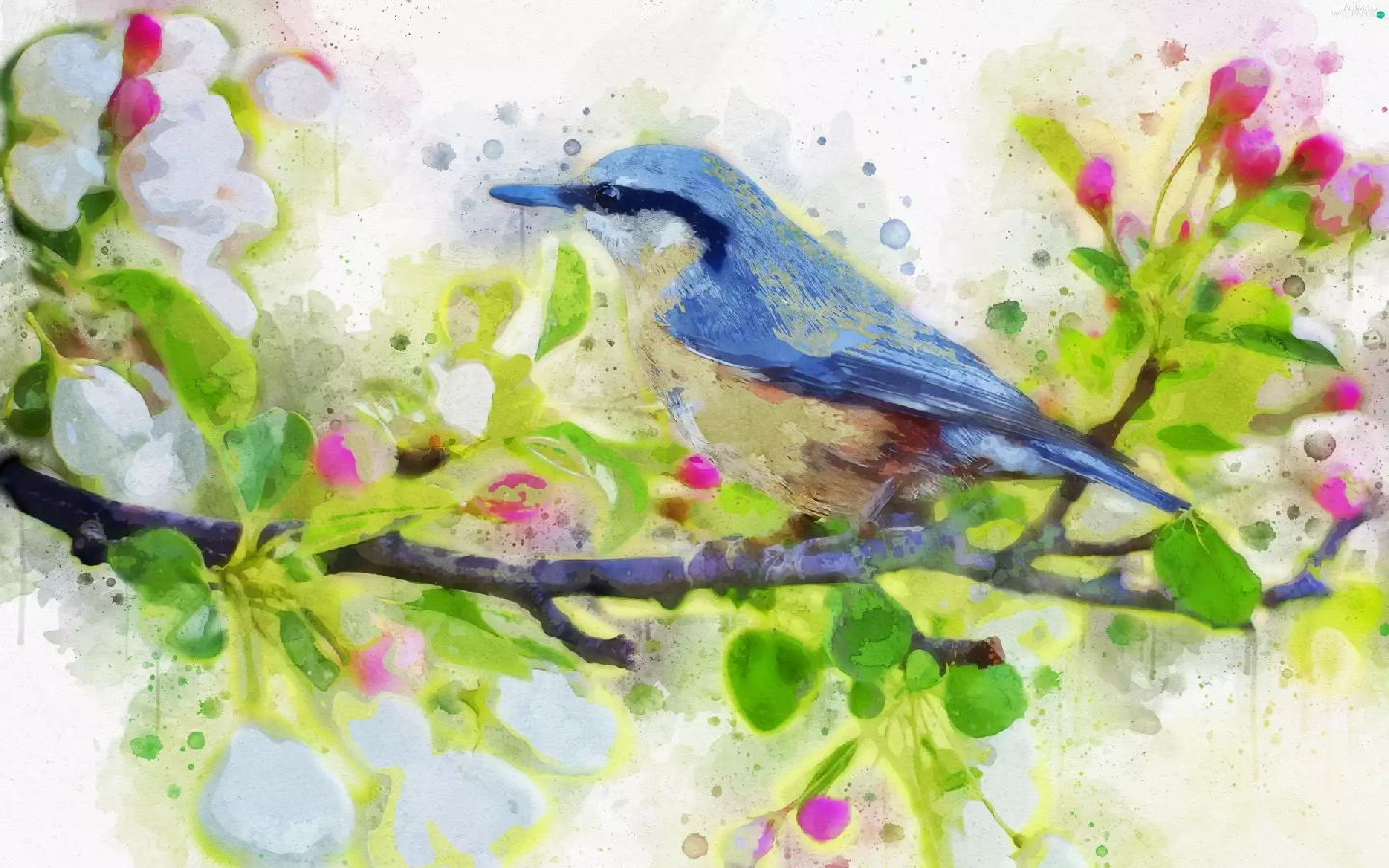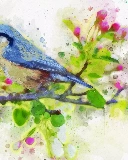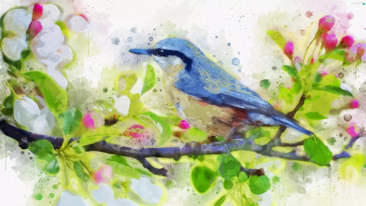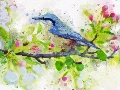 blue, picture, watercolor, Bird