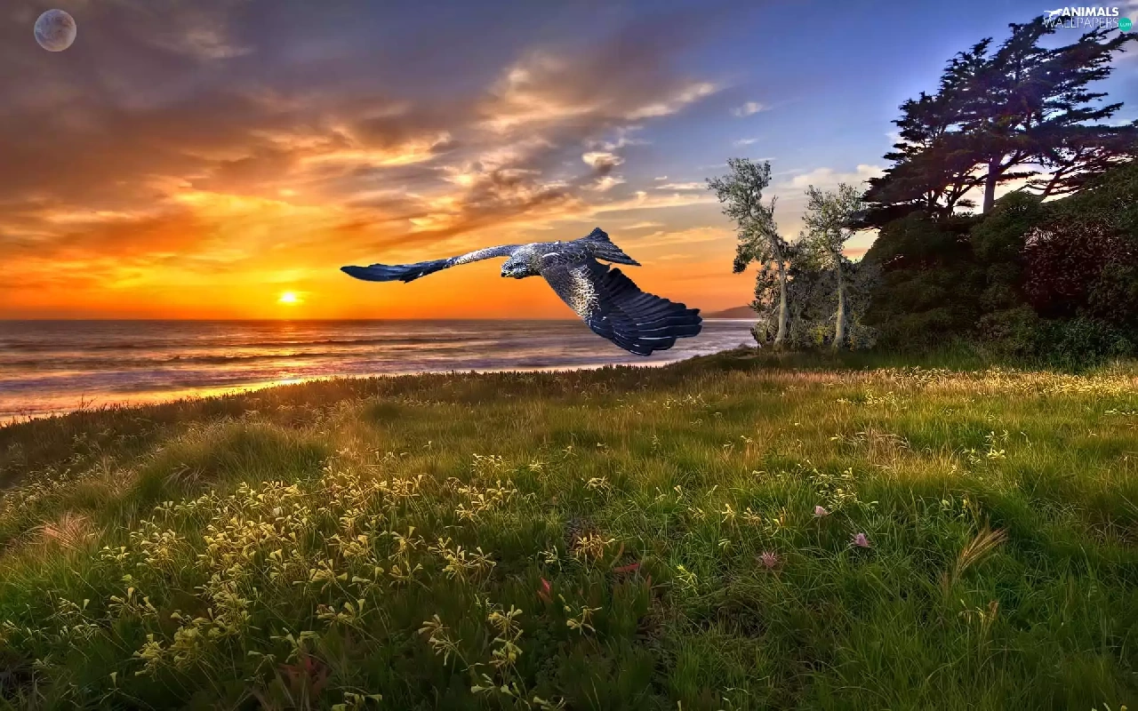 falcon, Great Sunsets, Bird