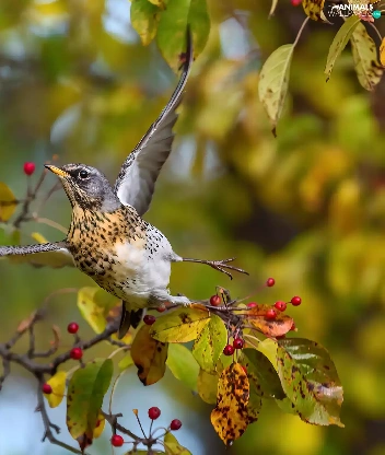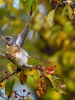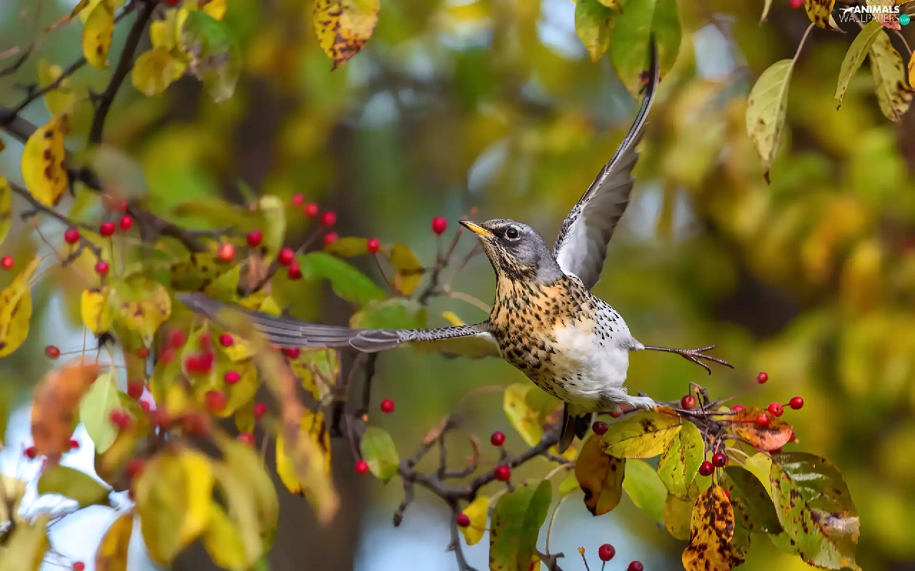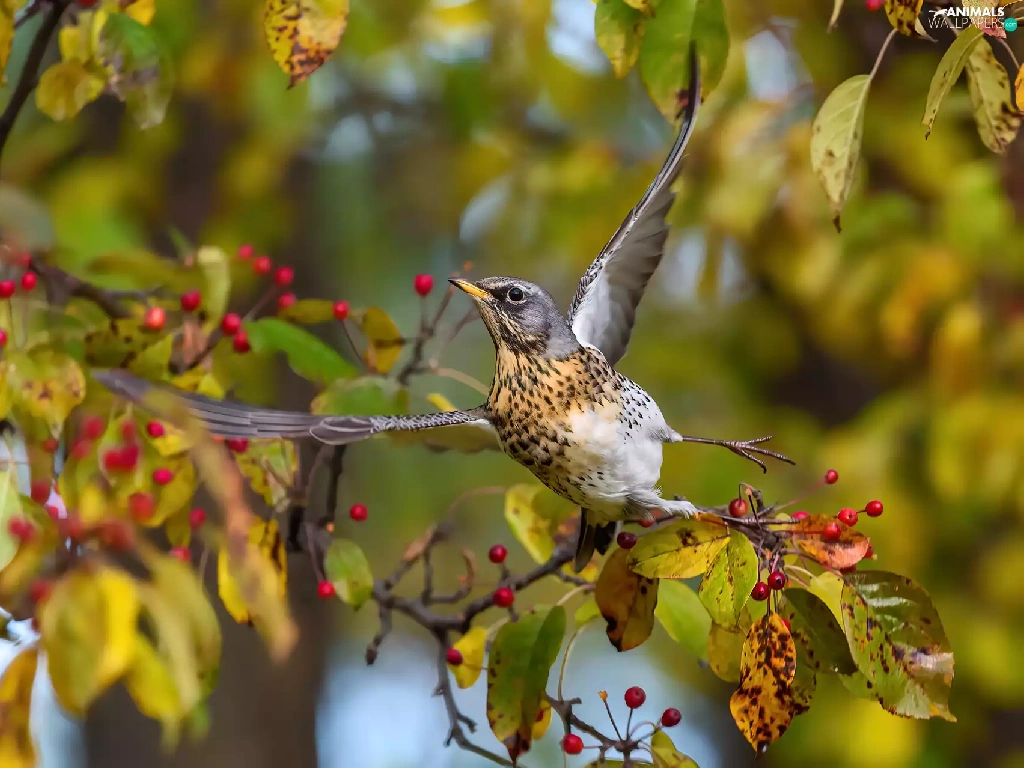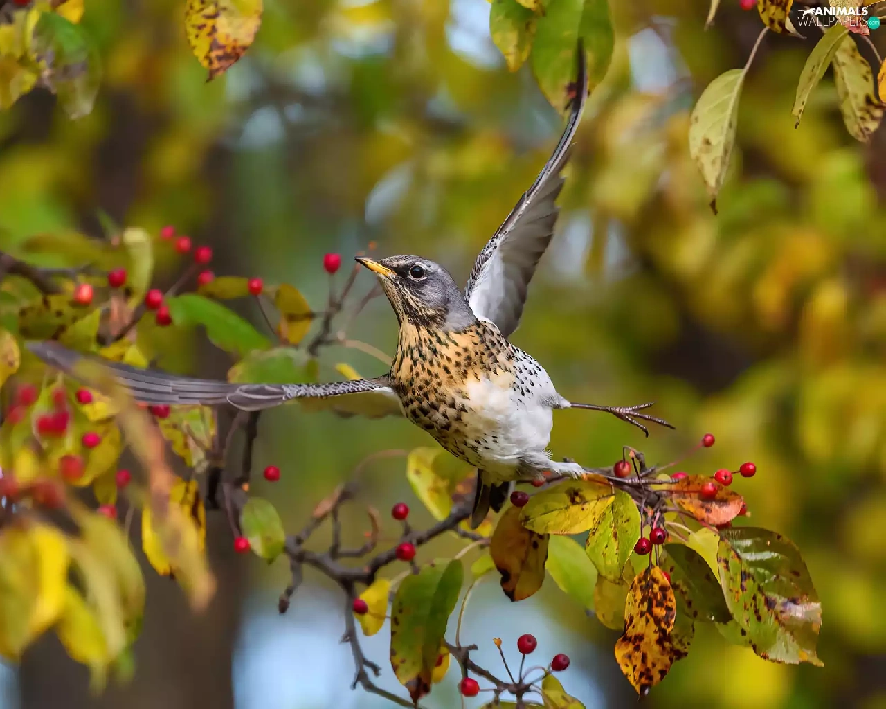 fieldfare, spread, wings, Bird