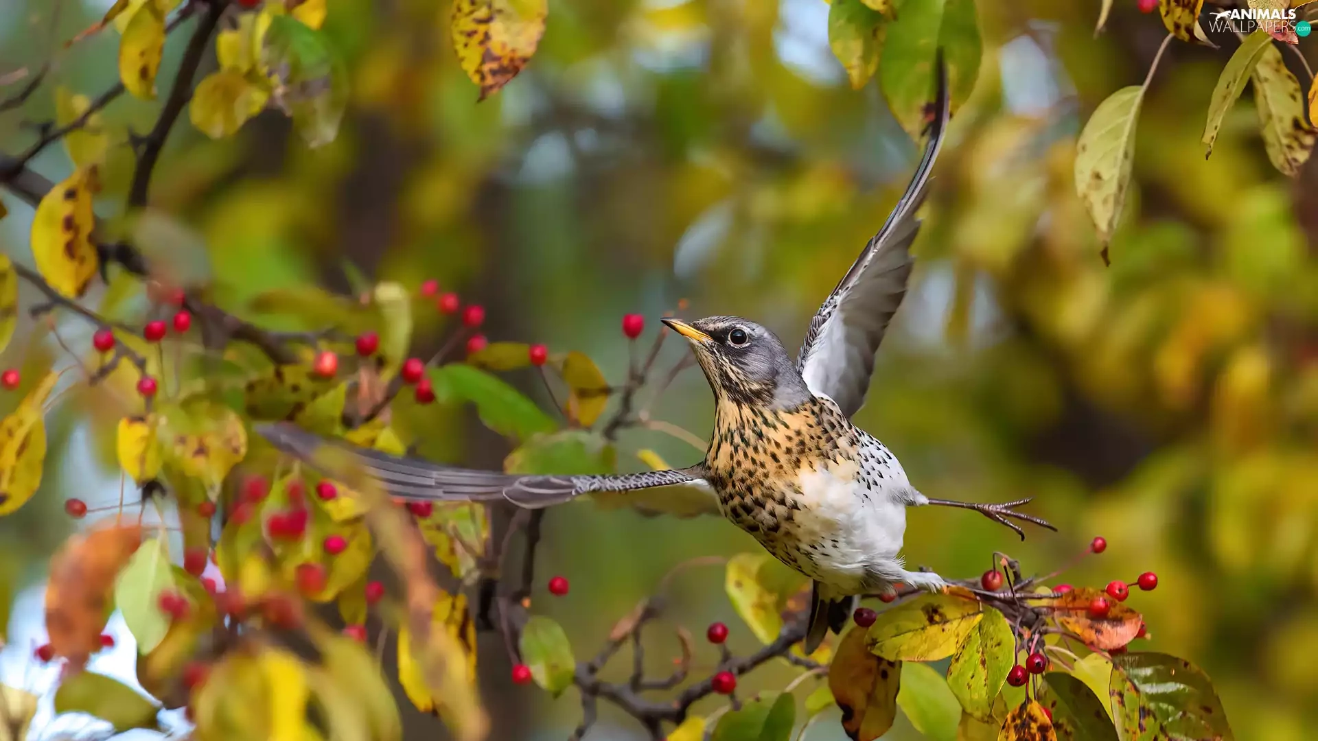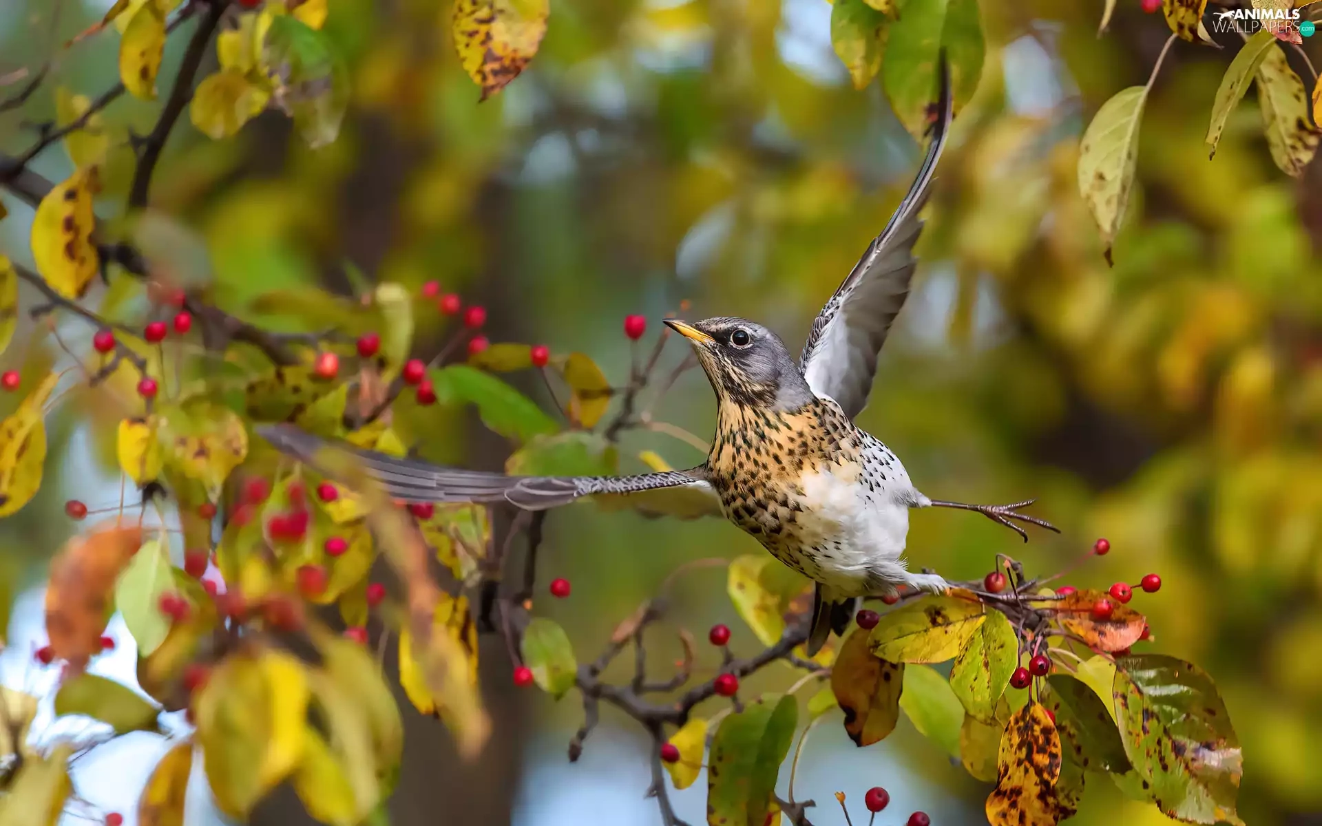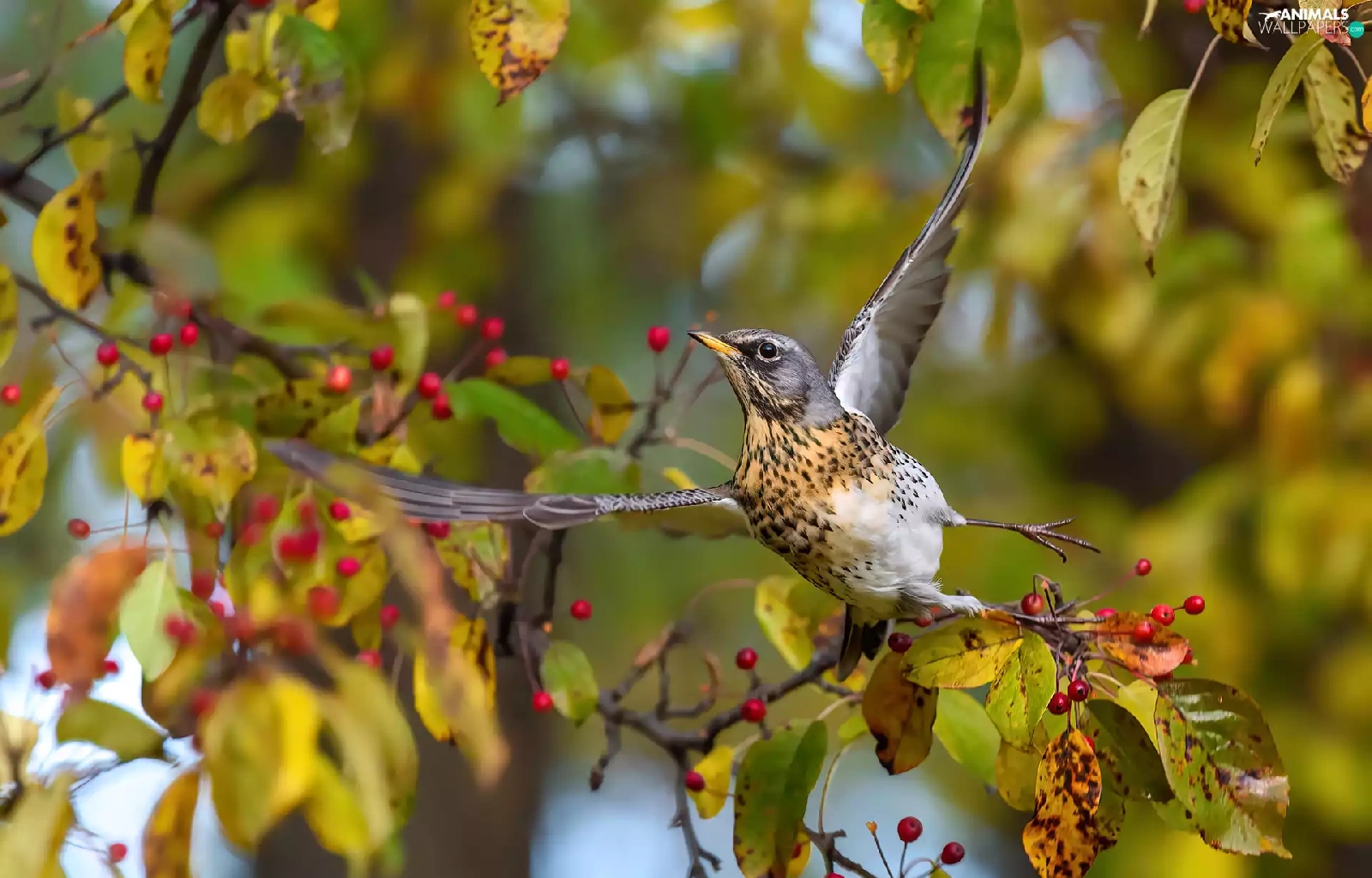 fieldfare, spread, wings, Bird