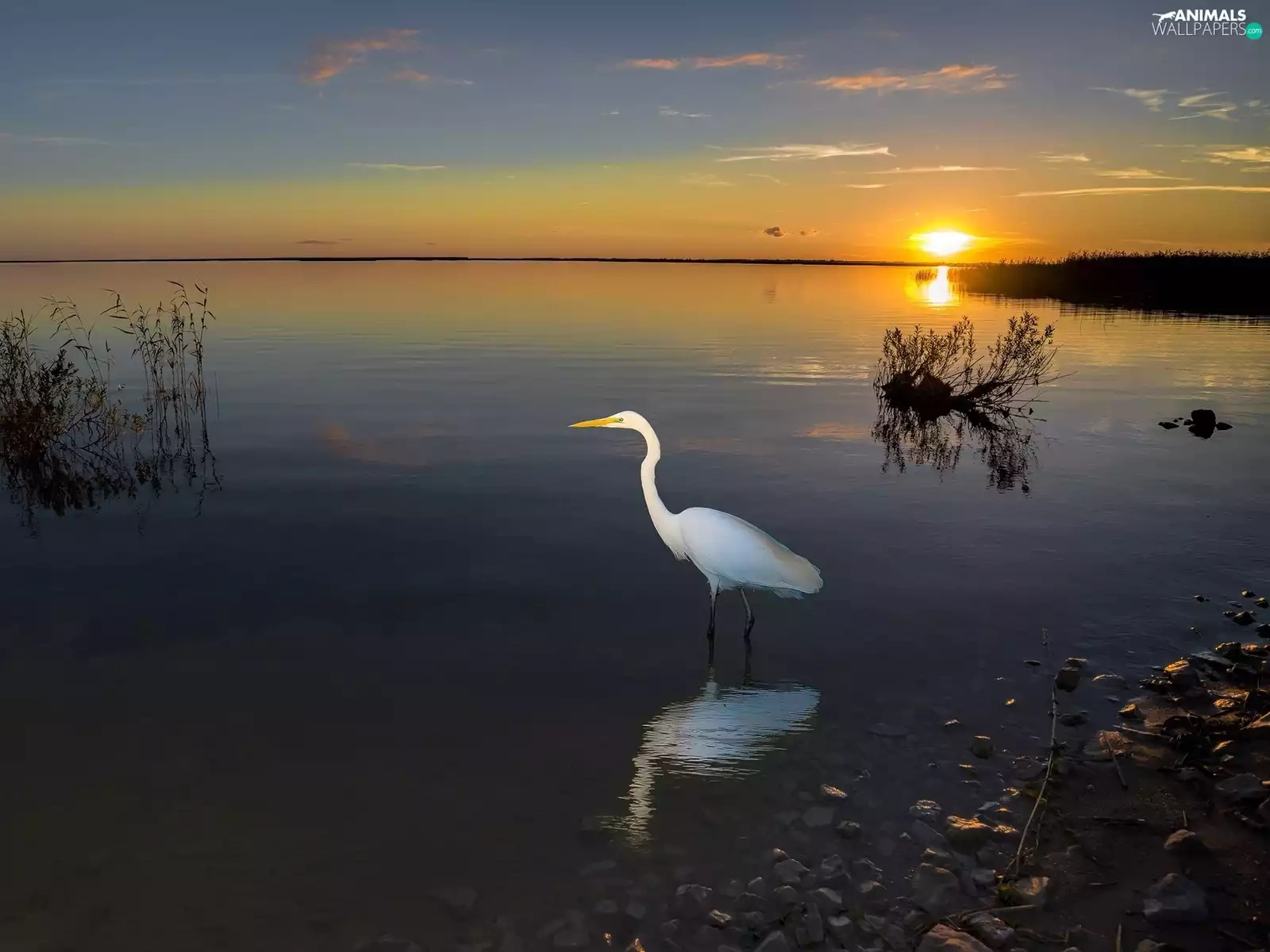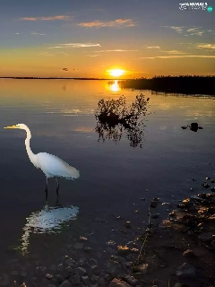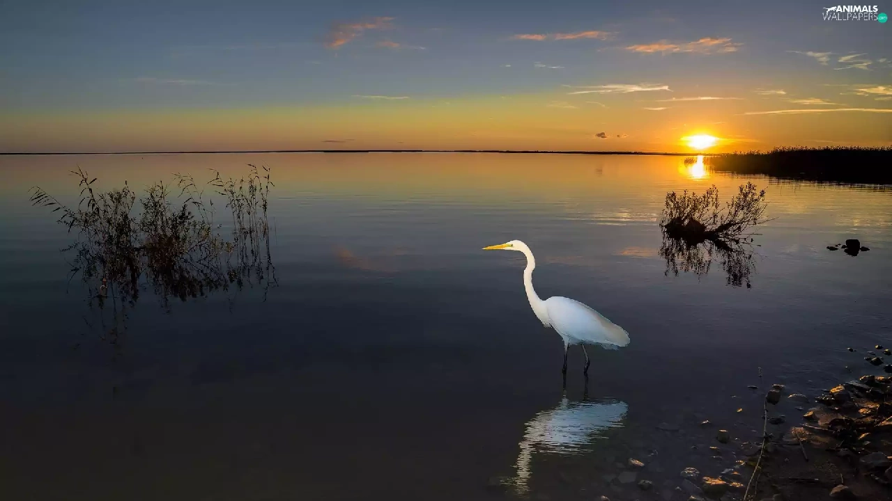 lake, Bird, heron, Great Sunsets