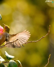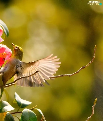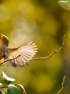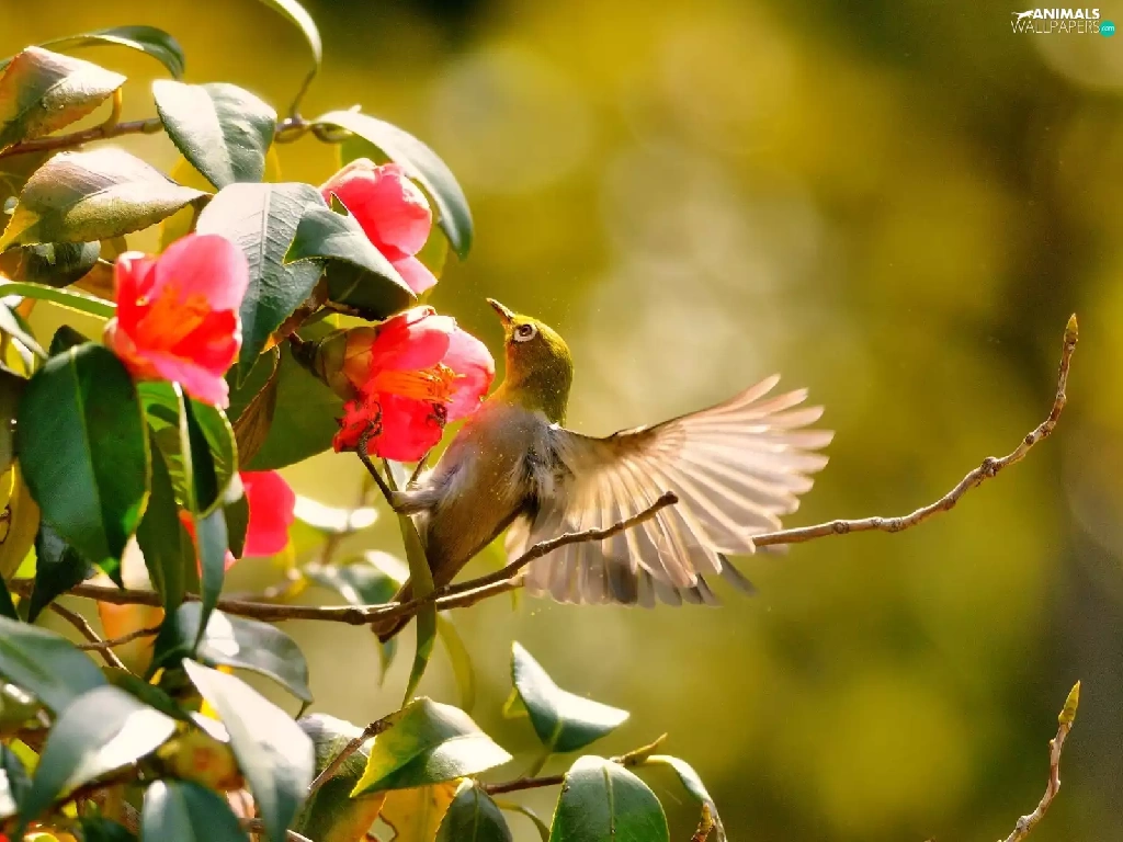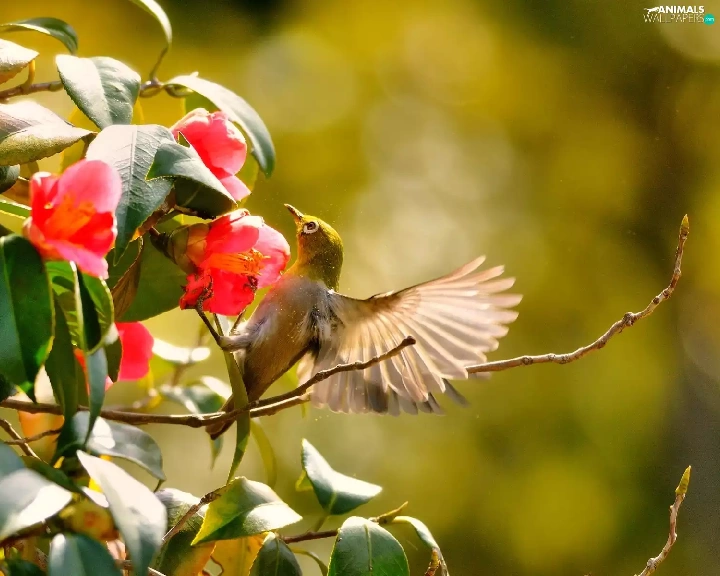 humming-bird, Red, Flowers, Bush