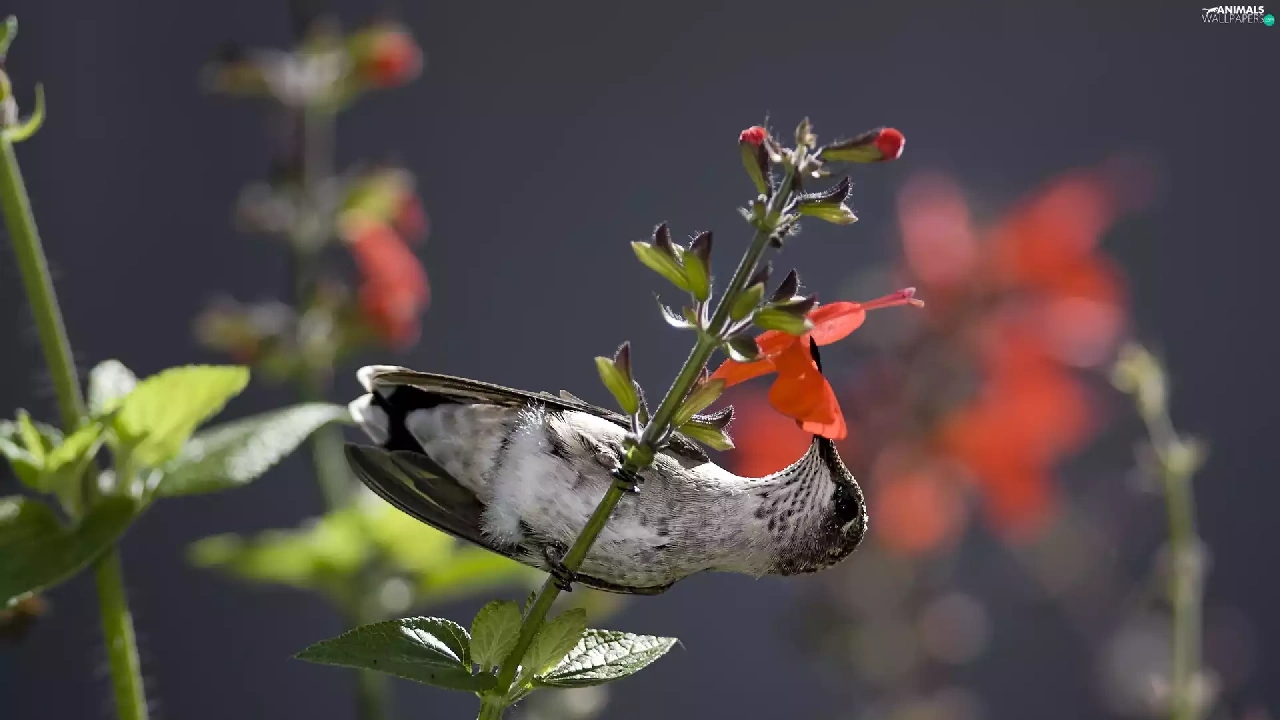 humming-bird, twig, Flowers, Bird