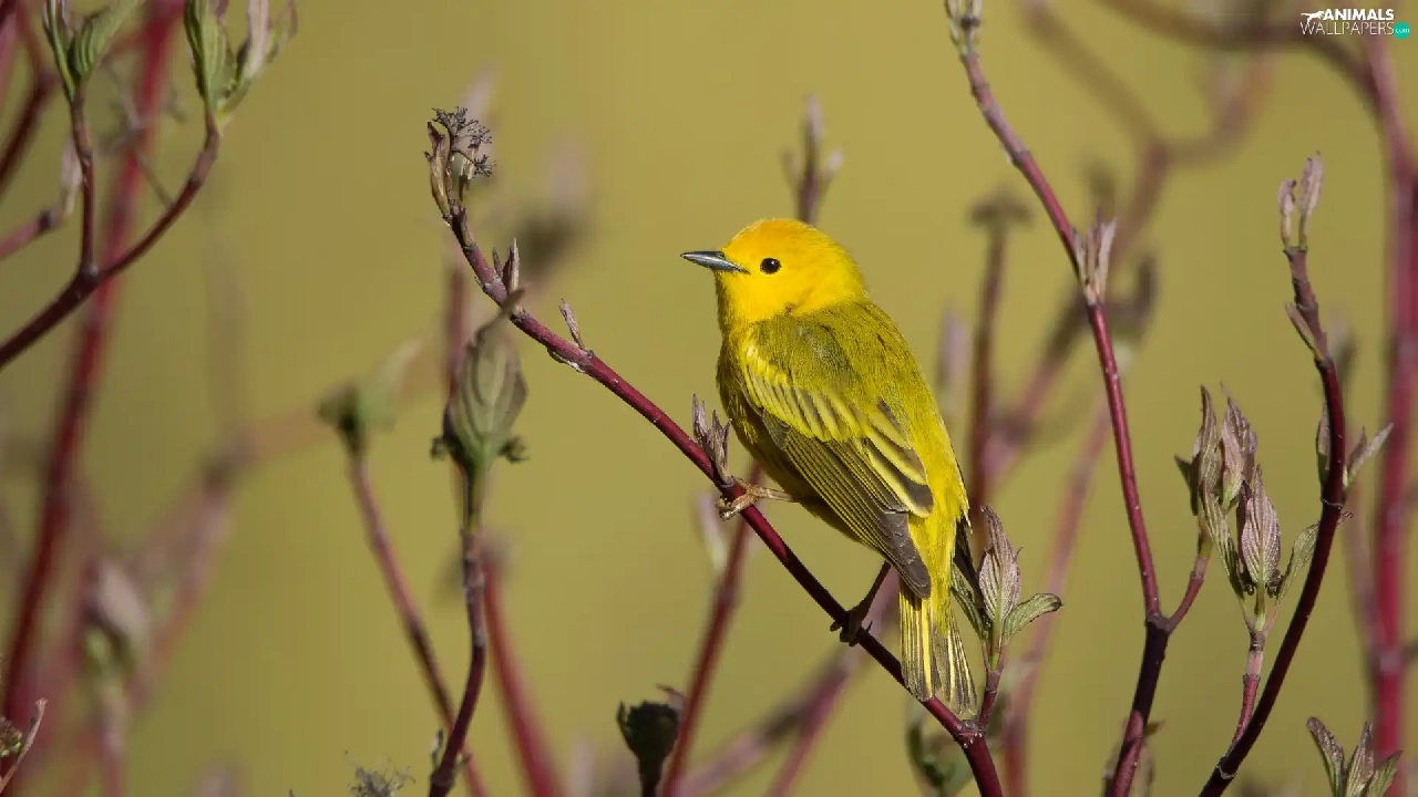 Twigs, Bird, Warbler egret, Yellow