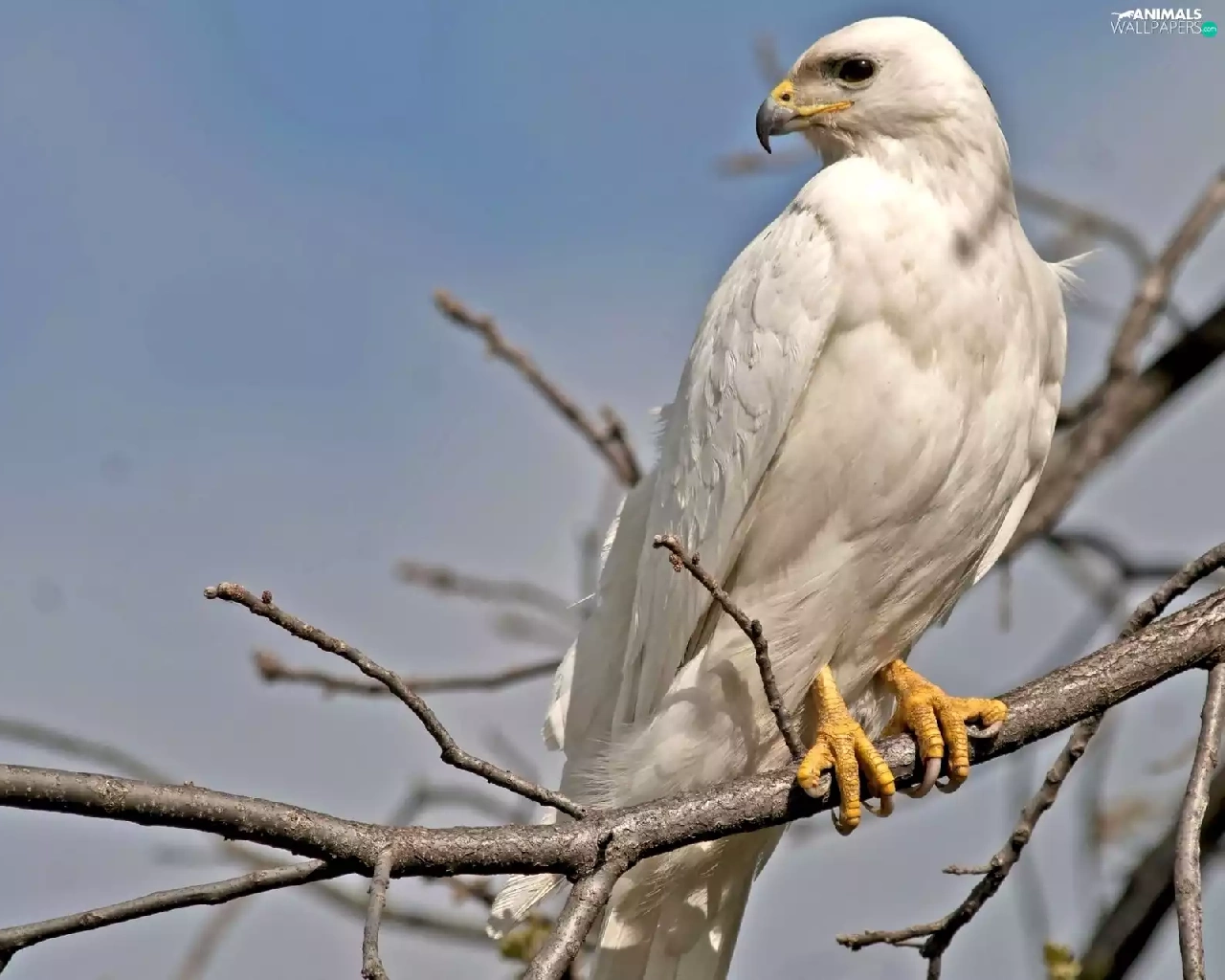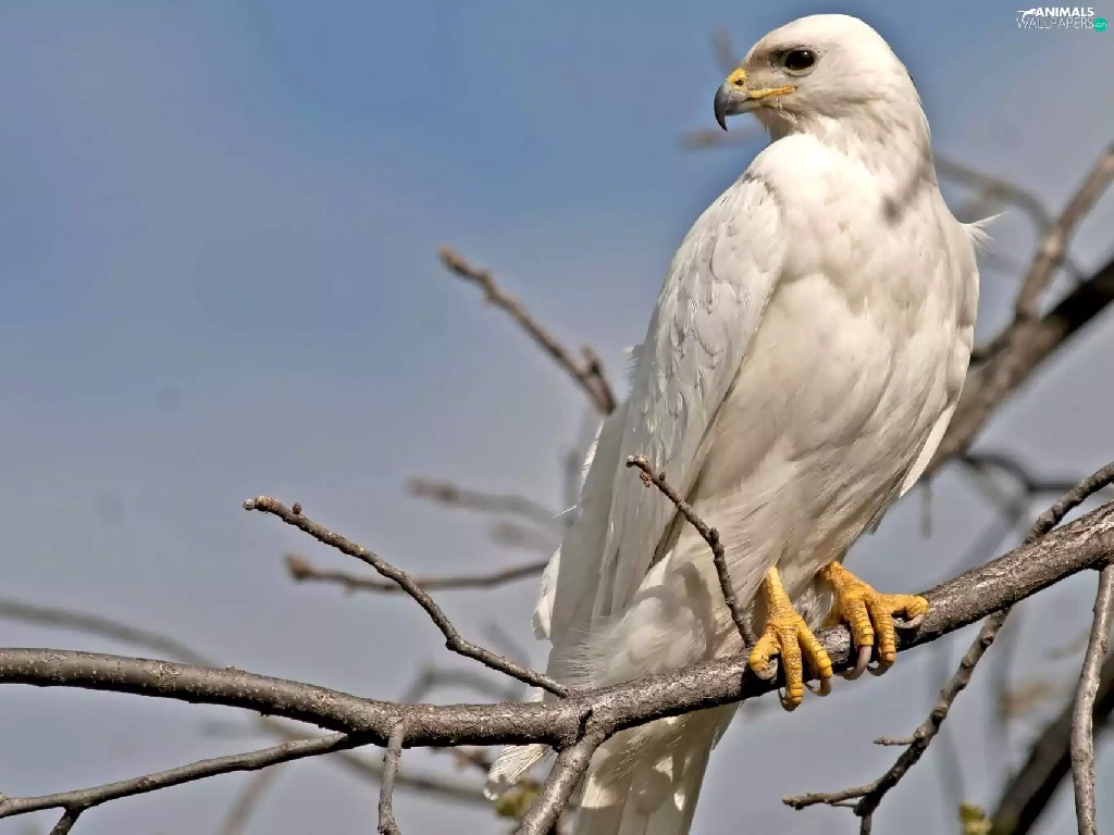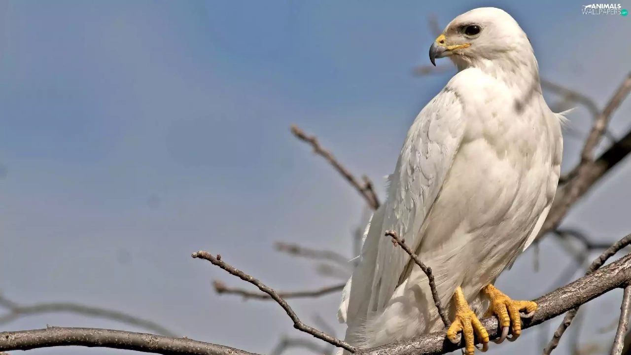 White, predatory, branch, Bird