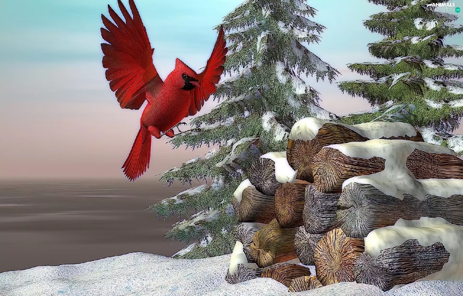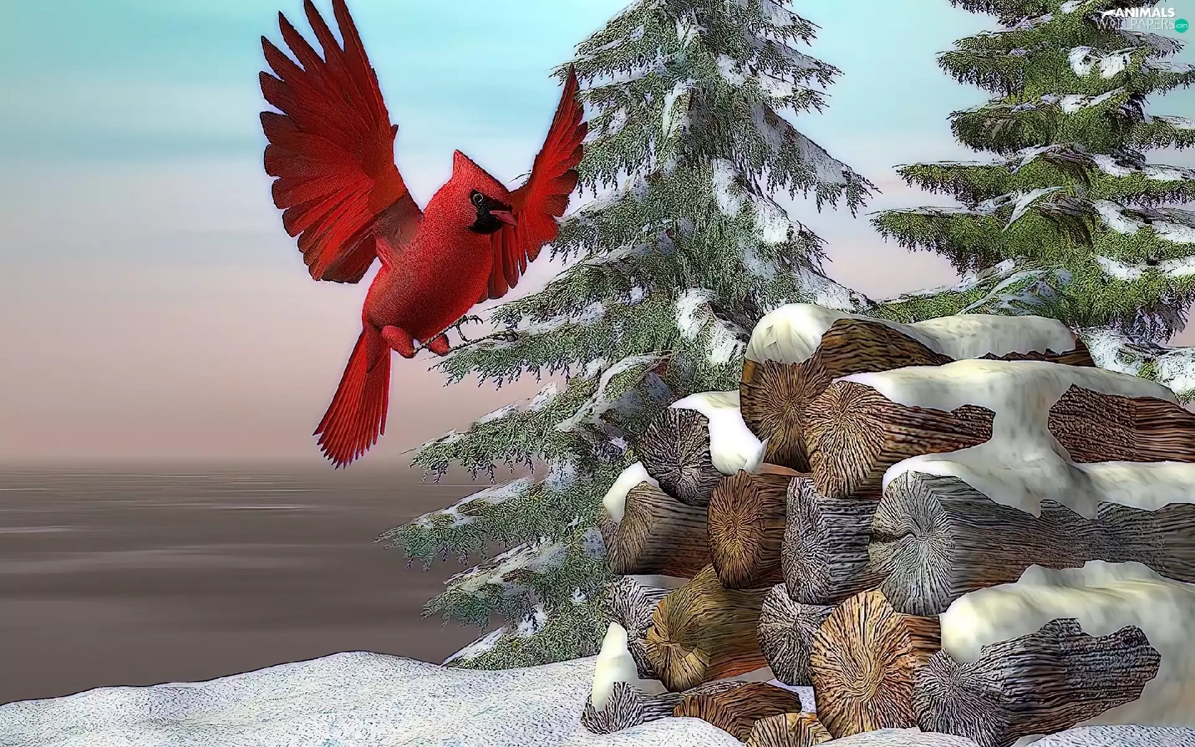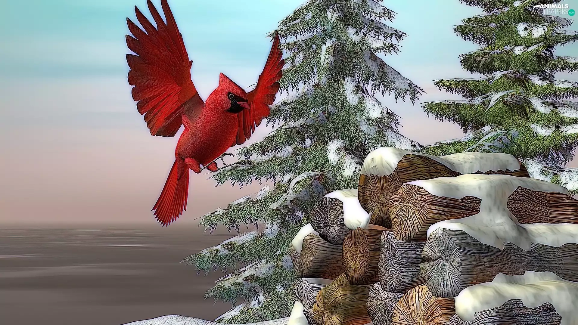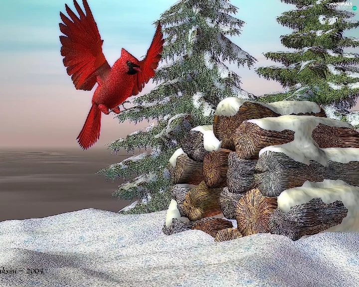winter, cardinal, 3D, Bird