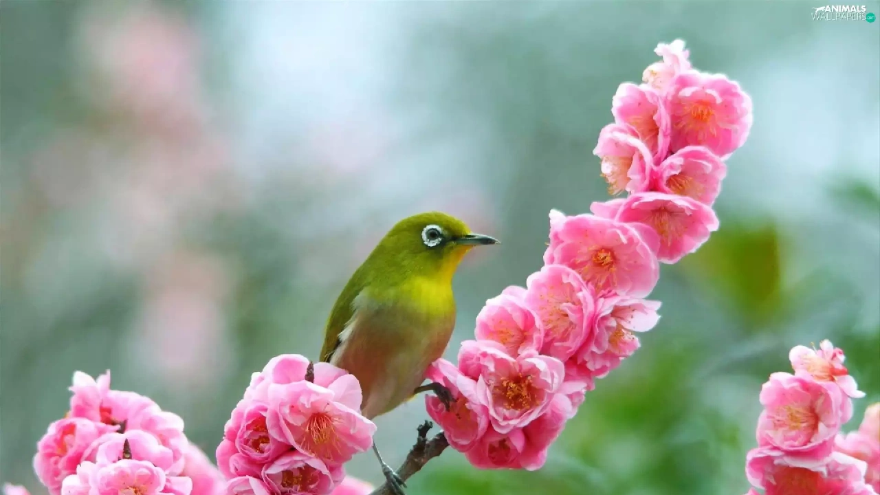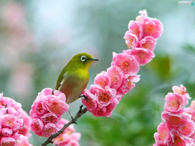 color, Blossoming, twig, birdies