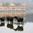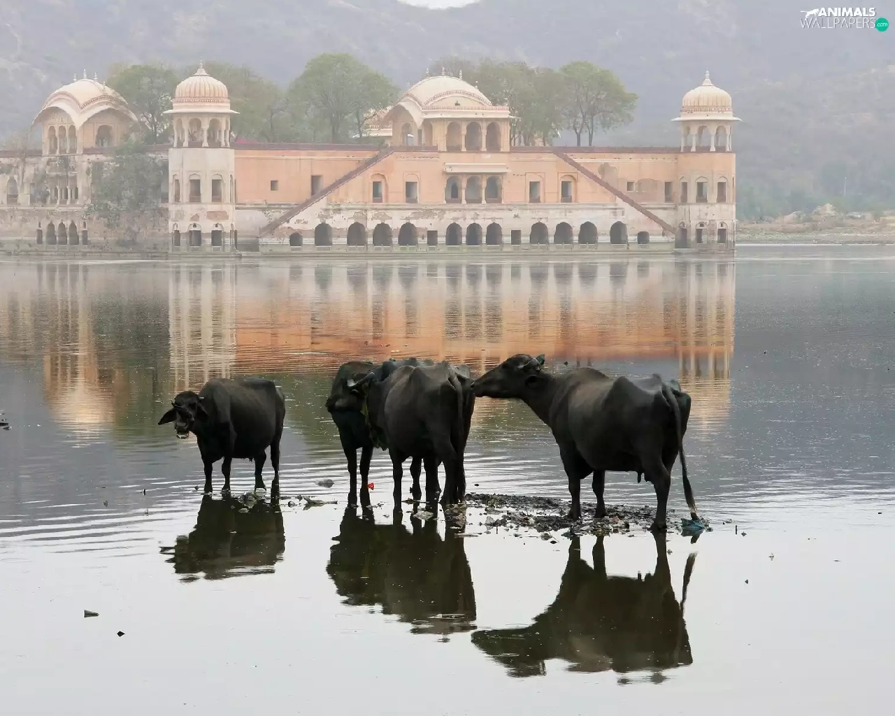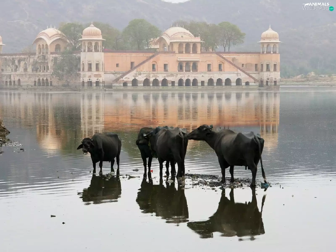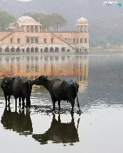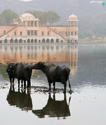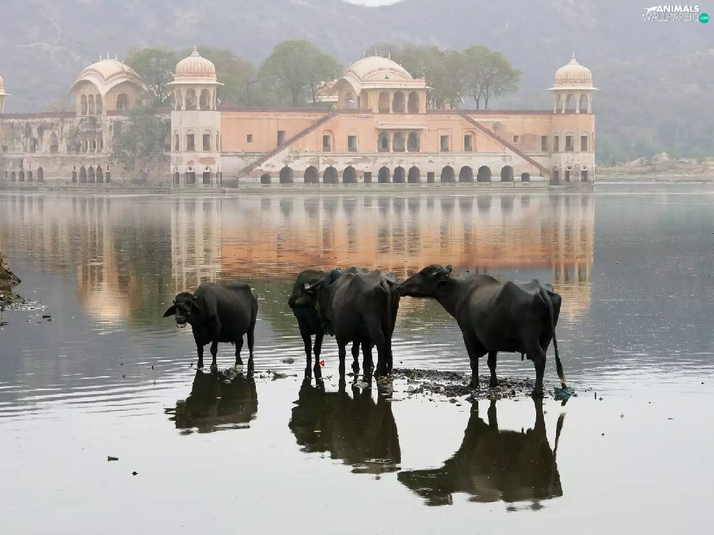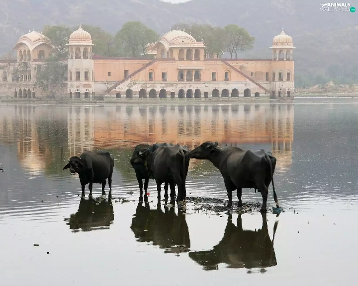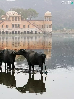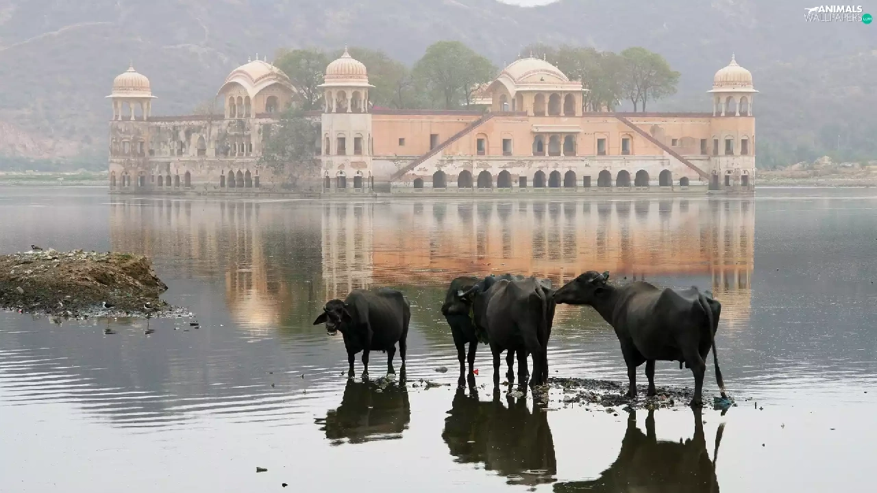 Cows, palace, india, birds