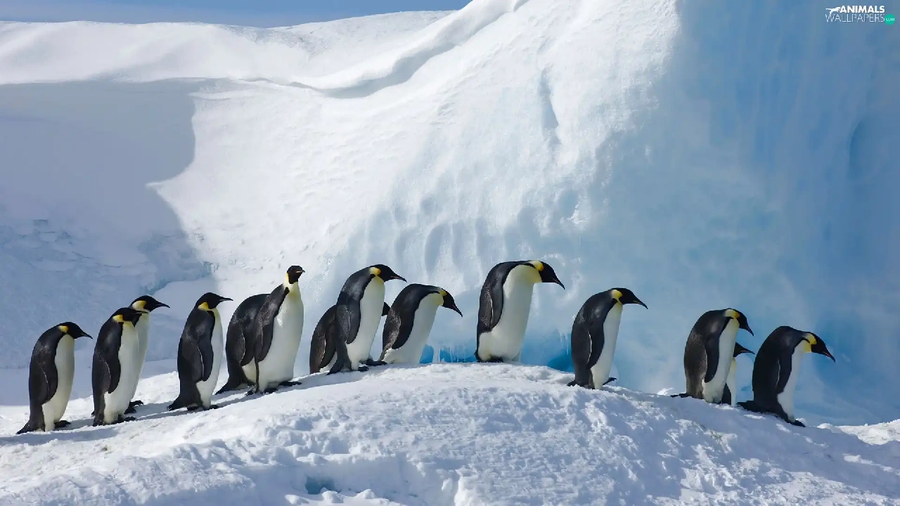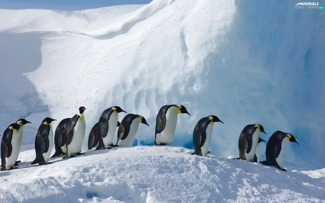 winter, birds, Emperor Penguins, snow