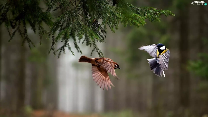 forest, ##, Locie, birds