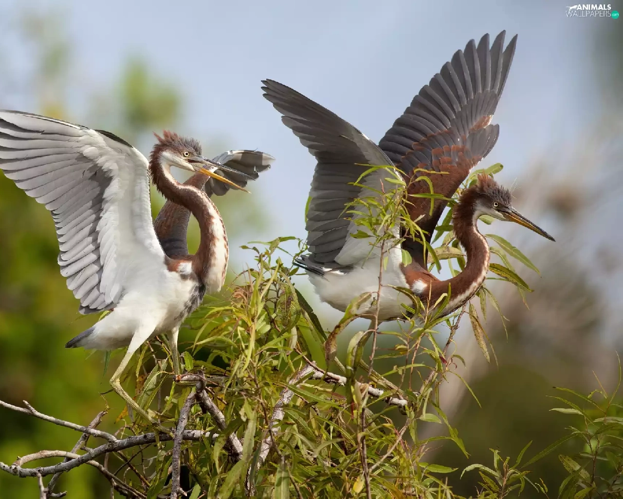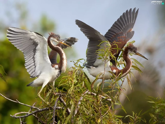 heron, Two cars, birds