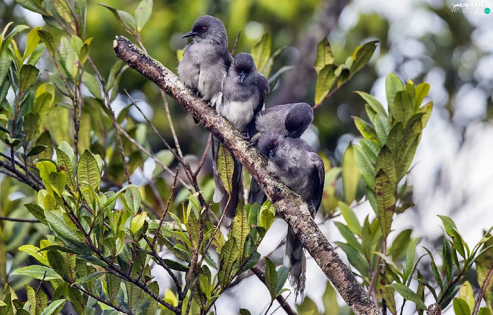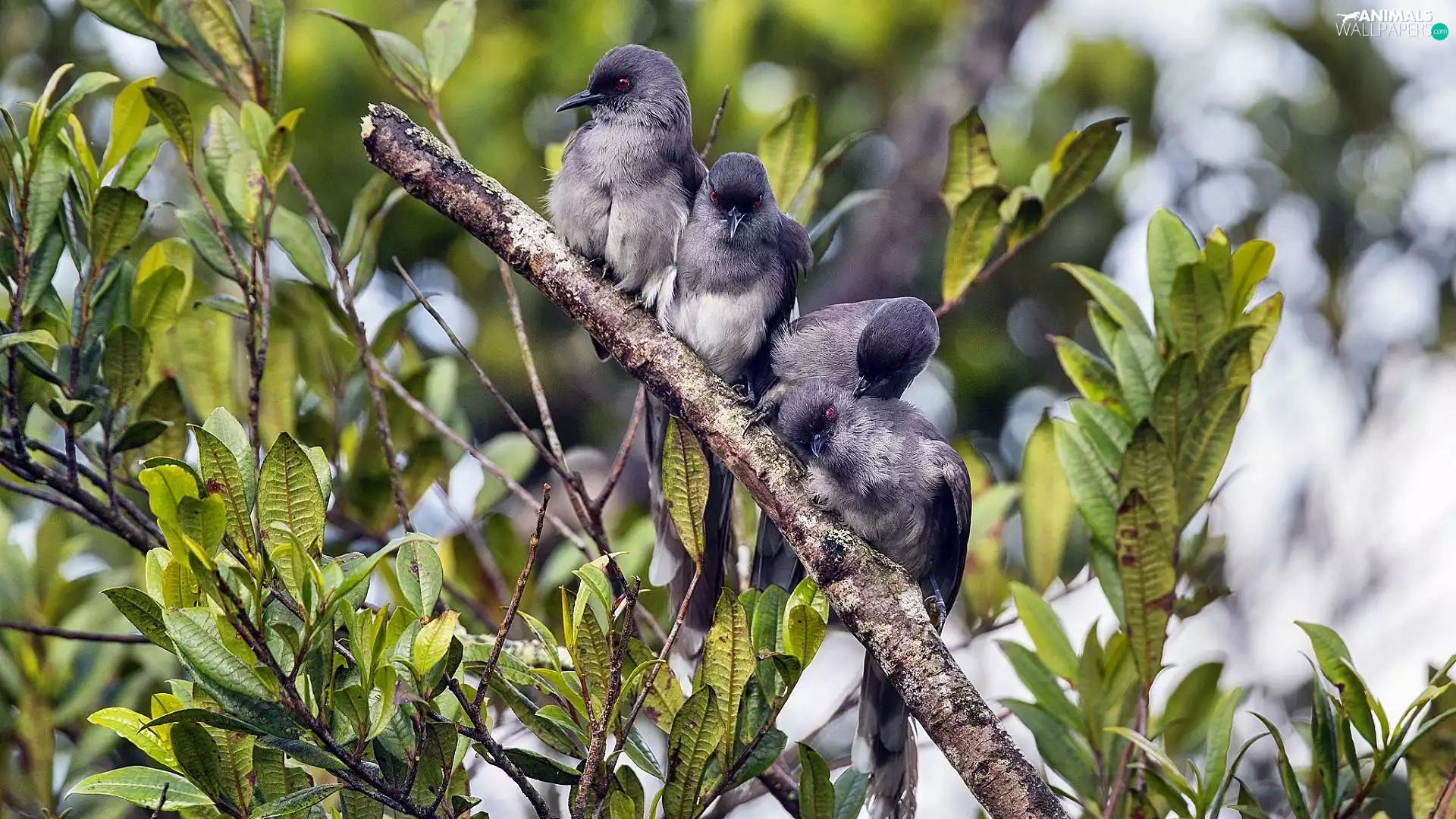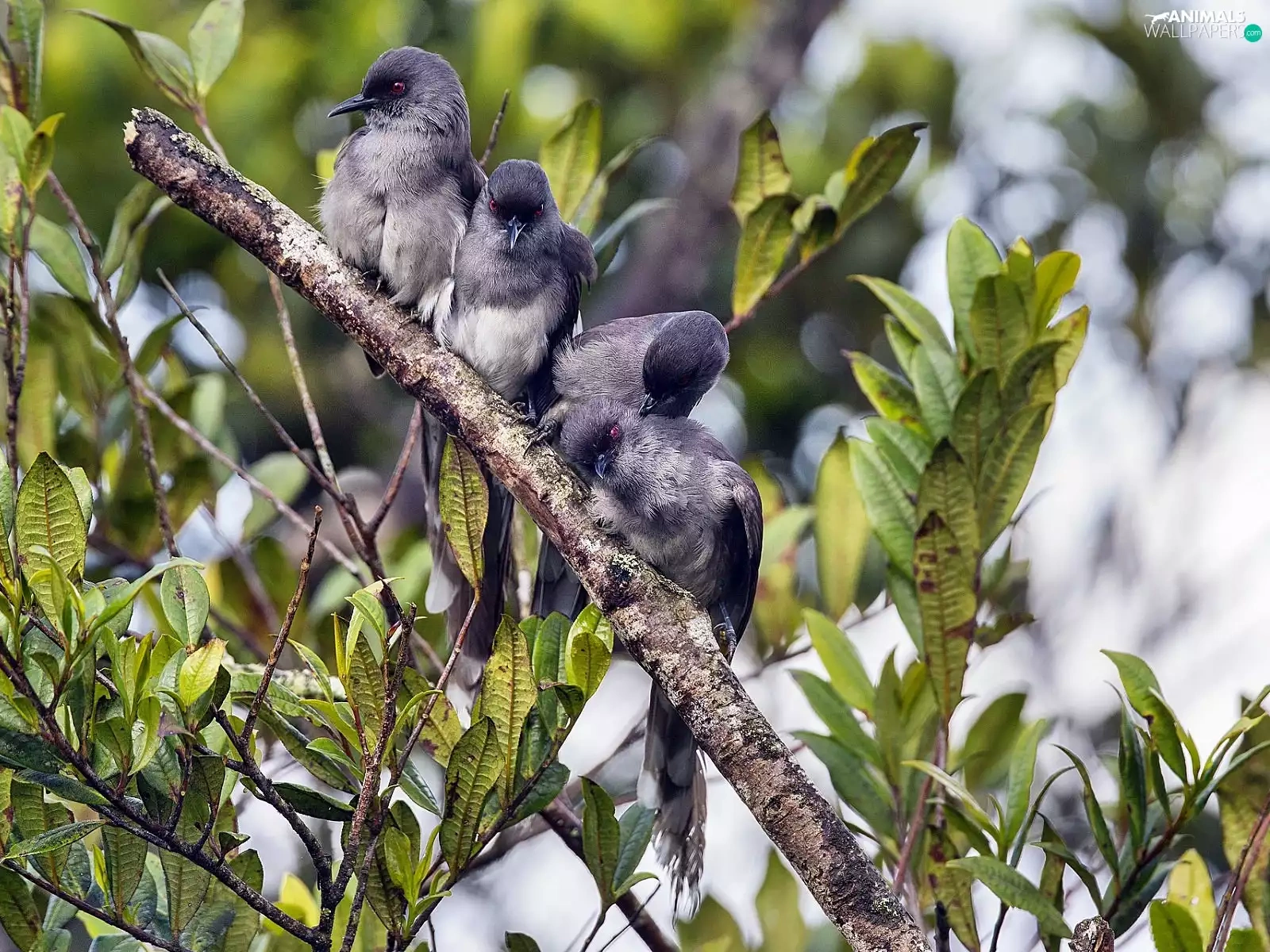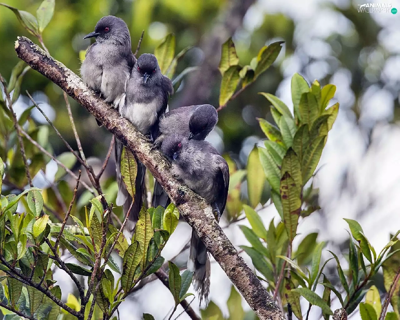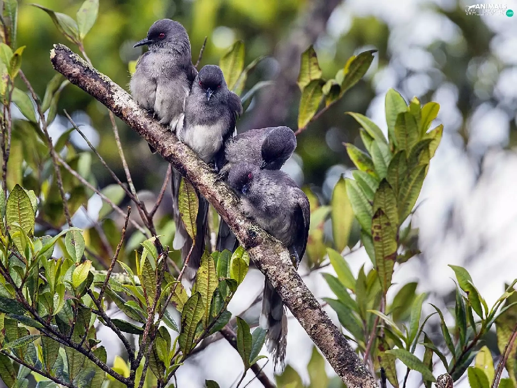 Grey, twig, Leaf, Birds on the log