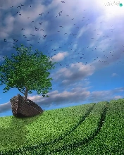 birds, trees, Meadow