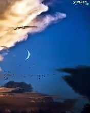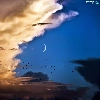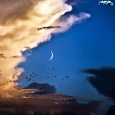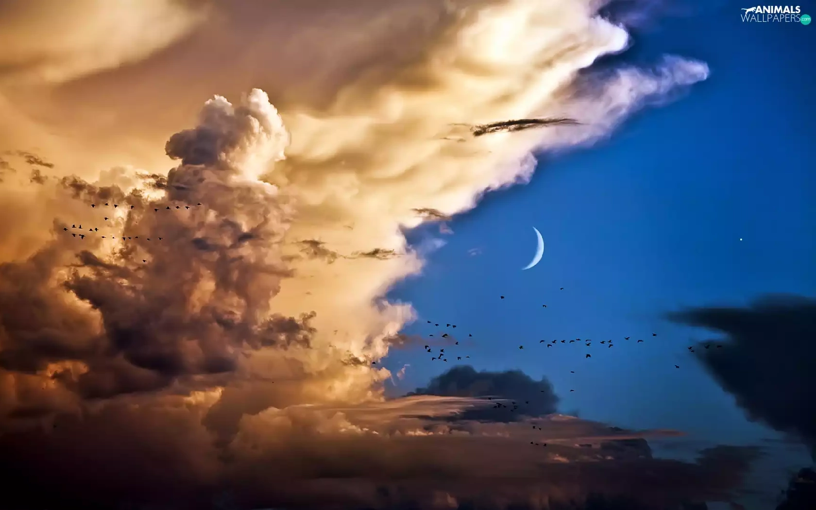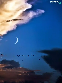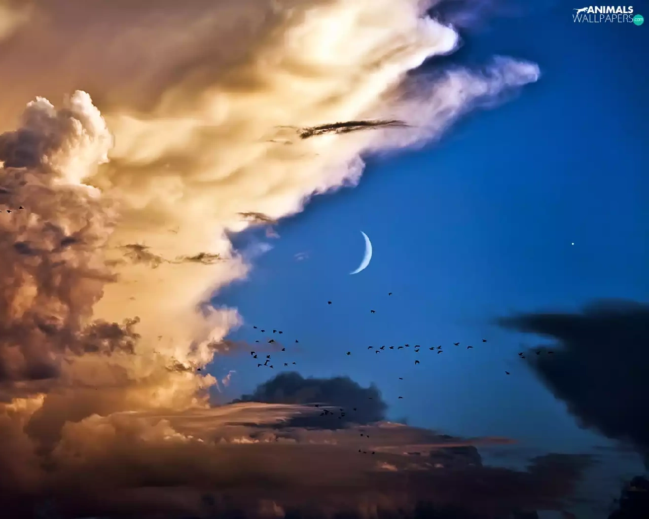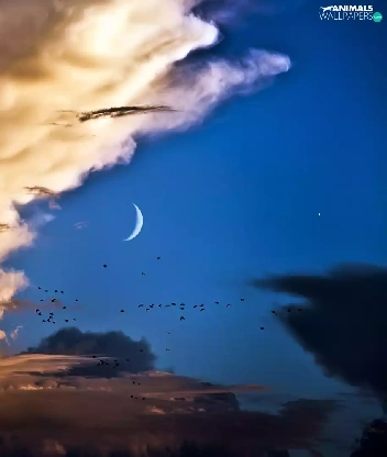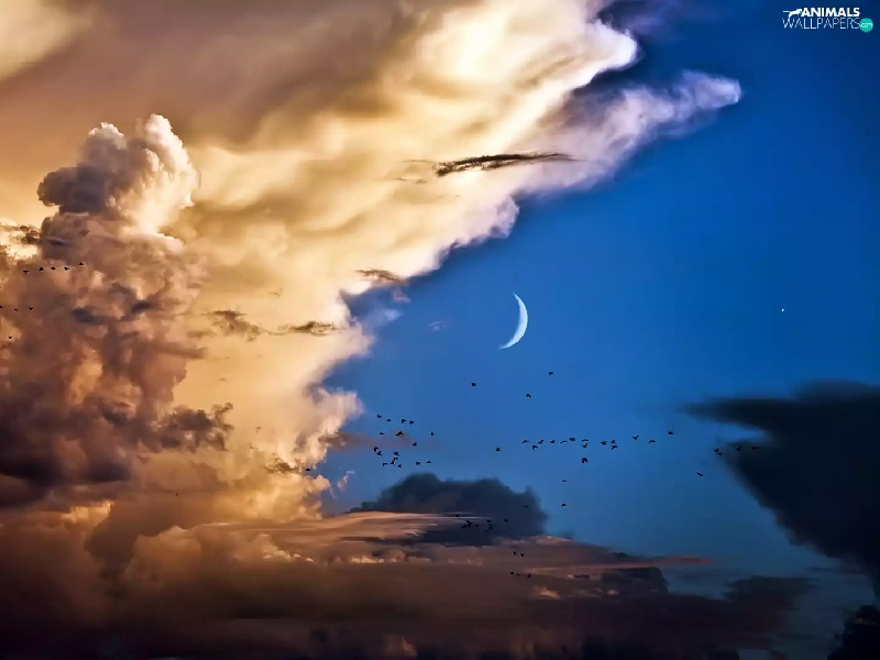 birds, clouds, moon
