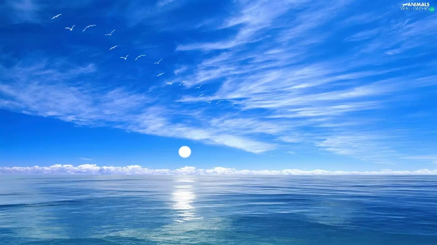 birds, Sky, sea