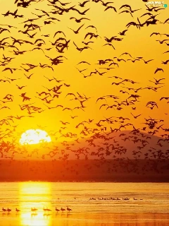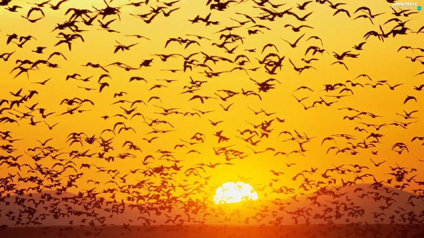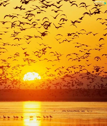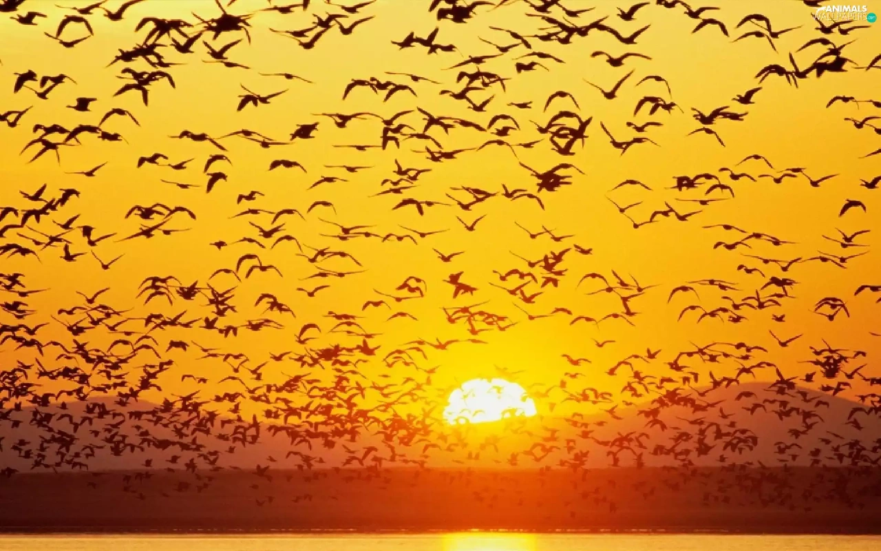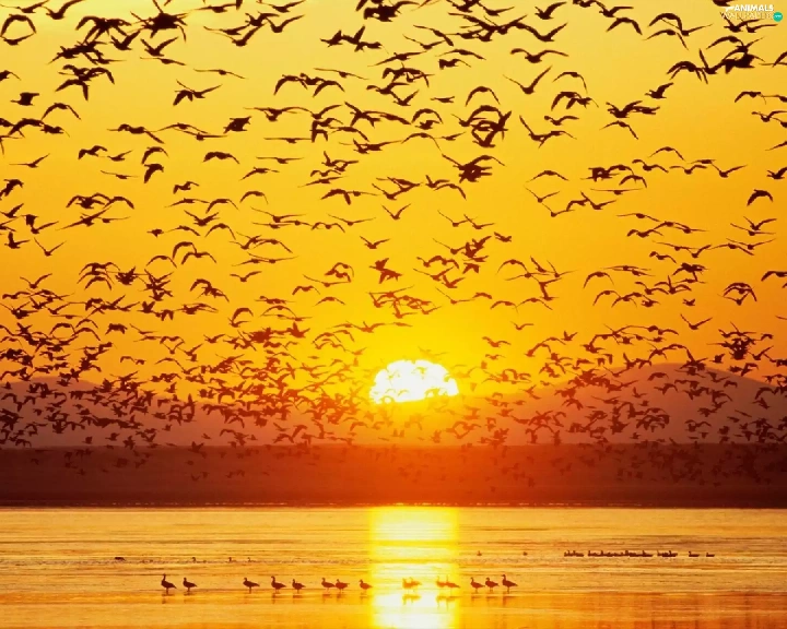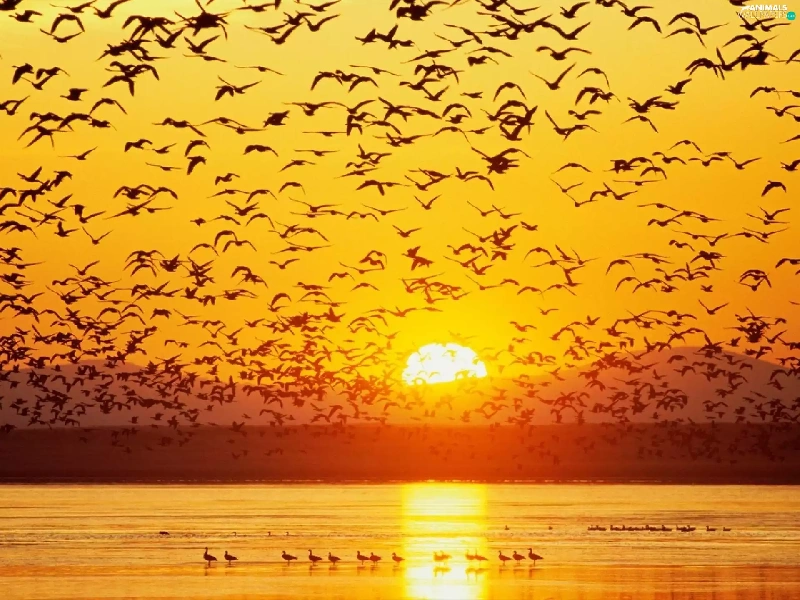 birds, west, sun