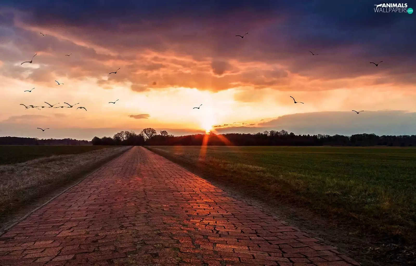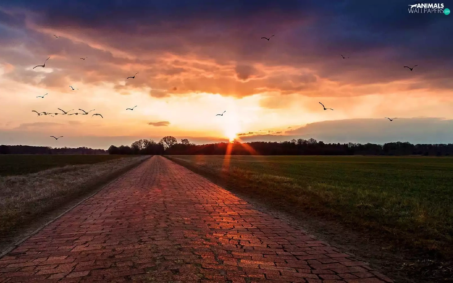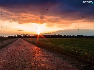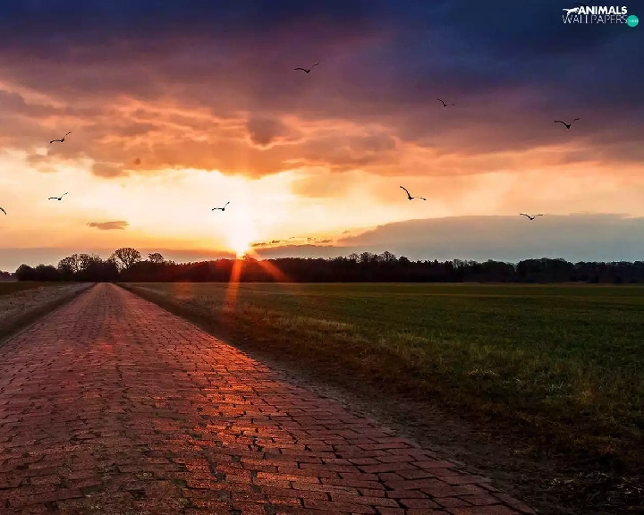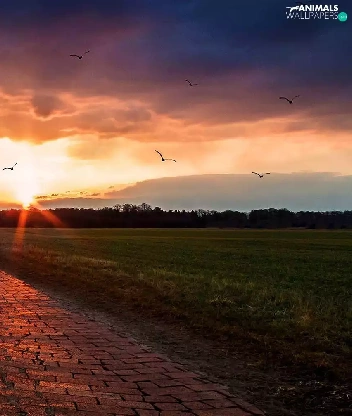 forest, birds, sun, Way, west