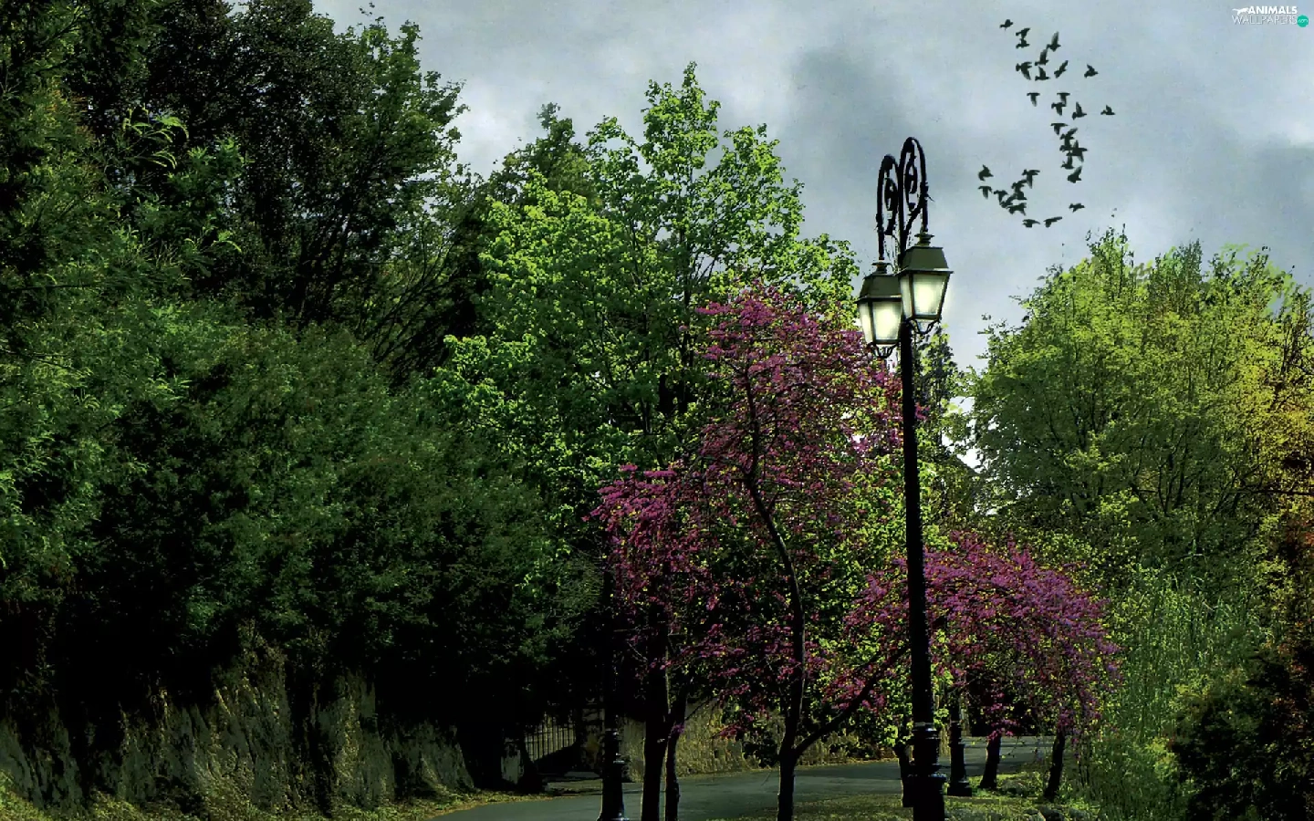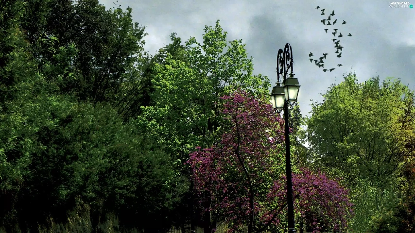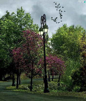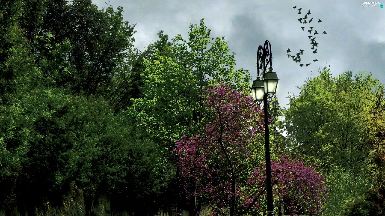 Lighthouse, birds, trees, viewes, Way