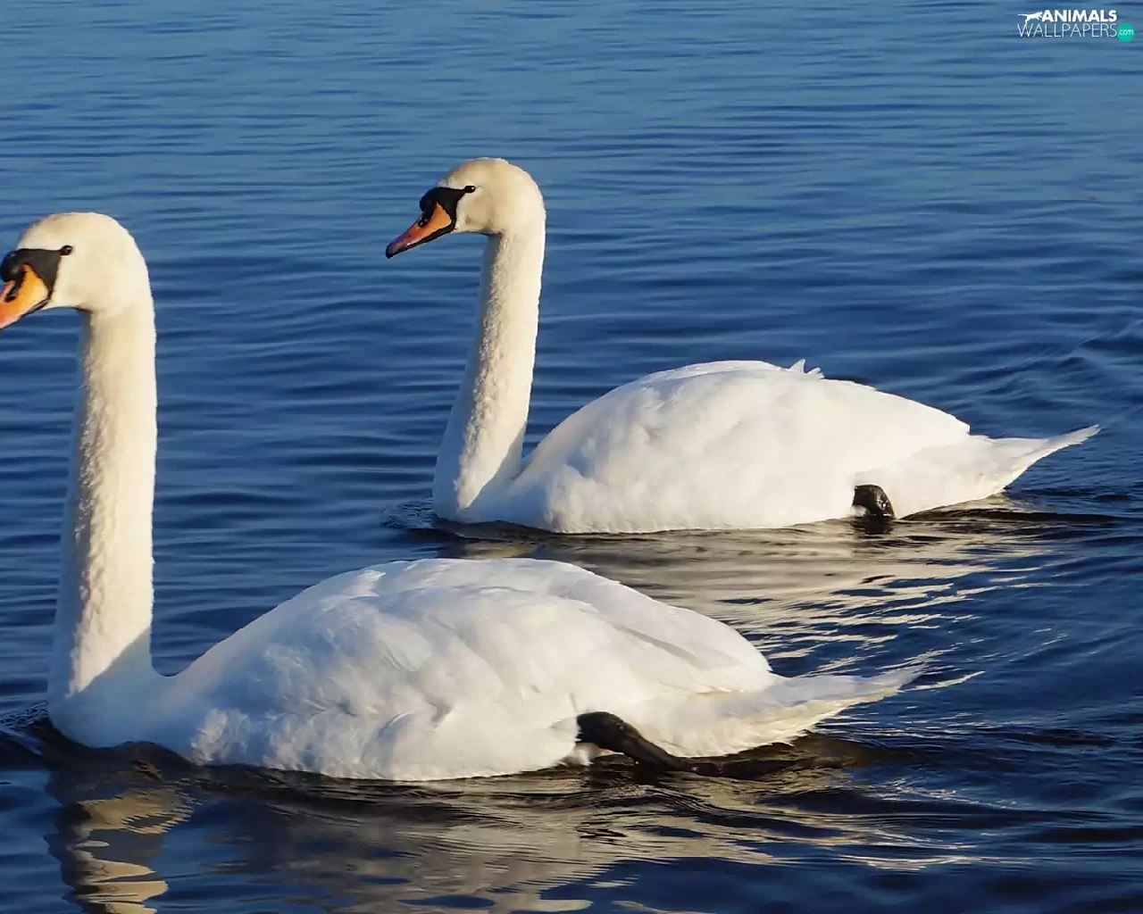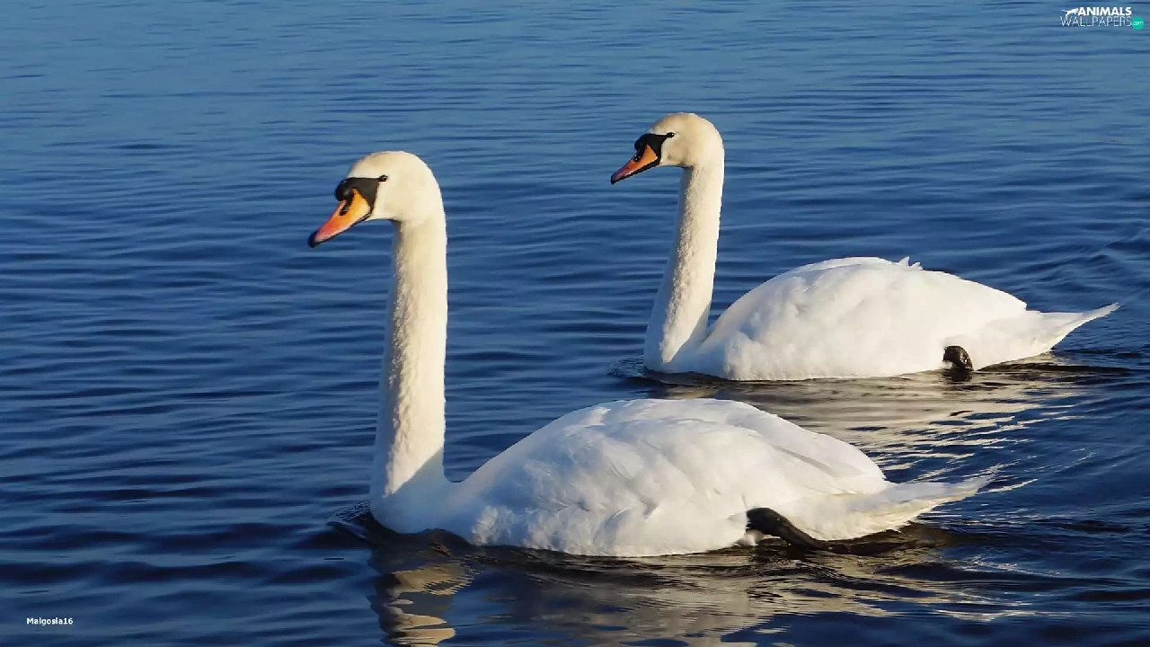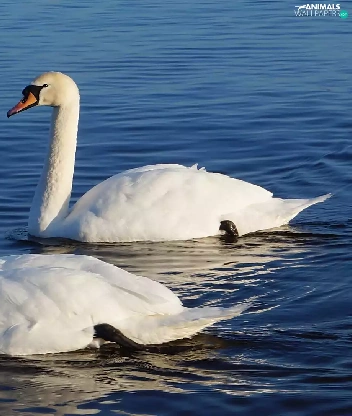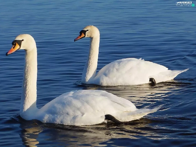 White, Swan, water, birds