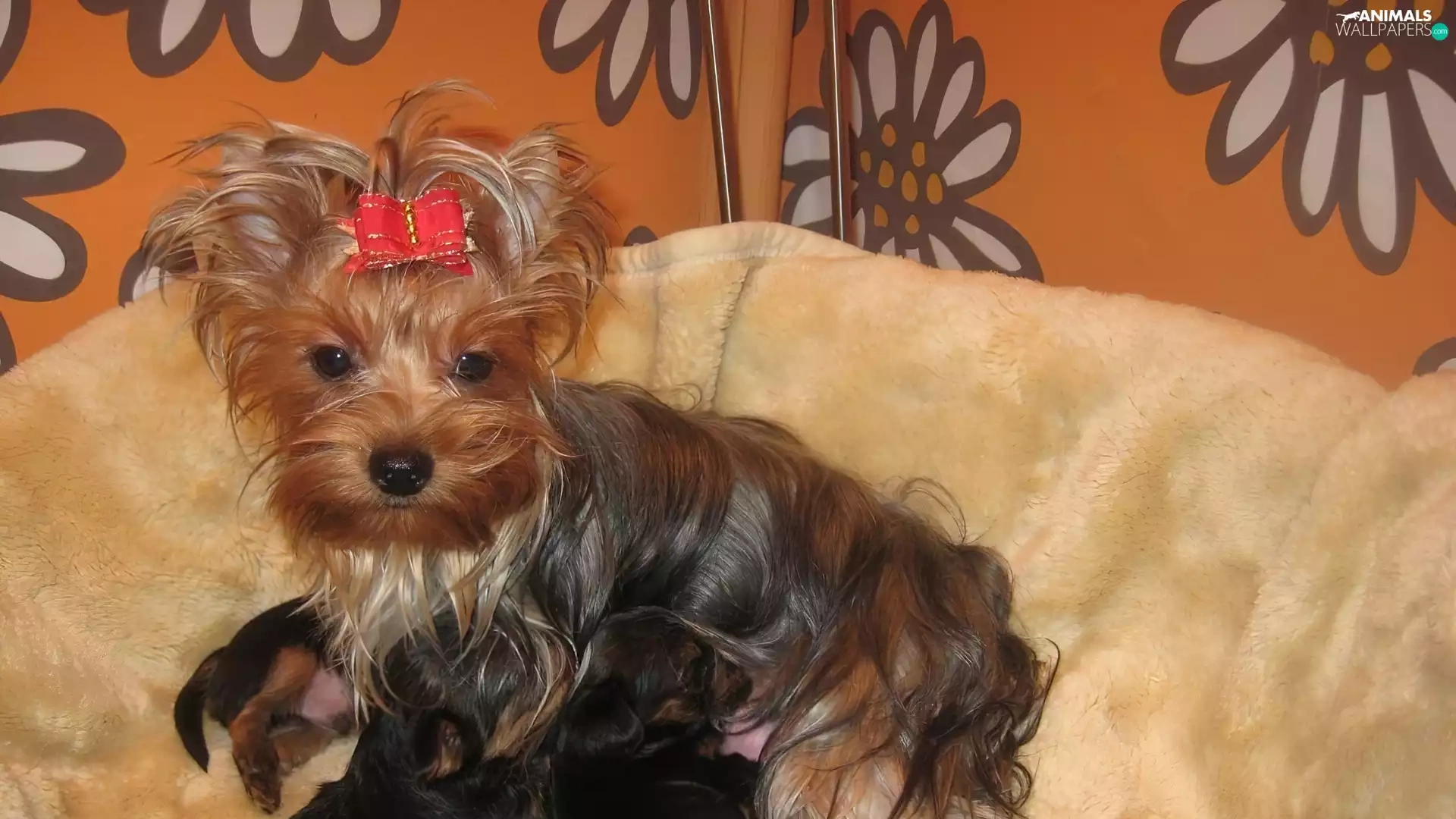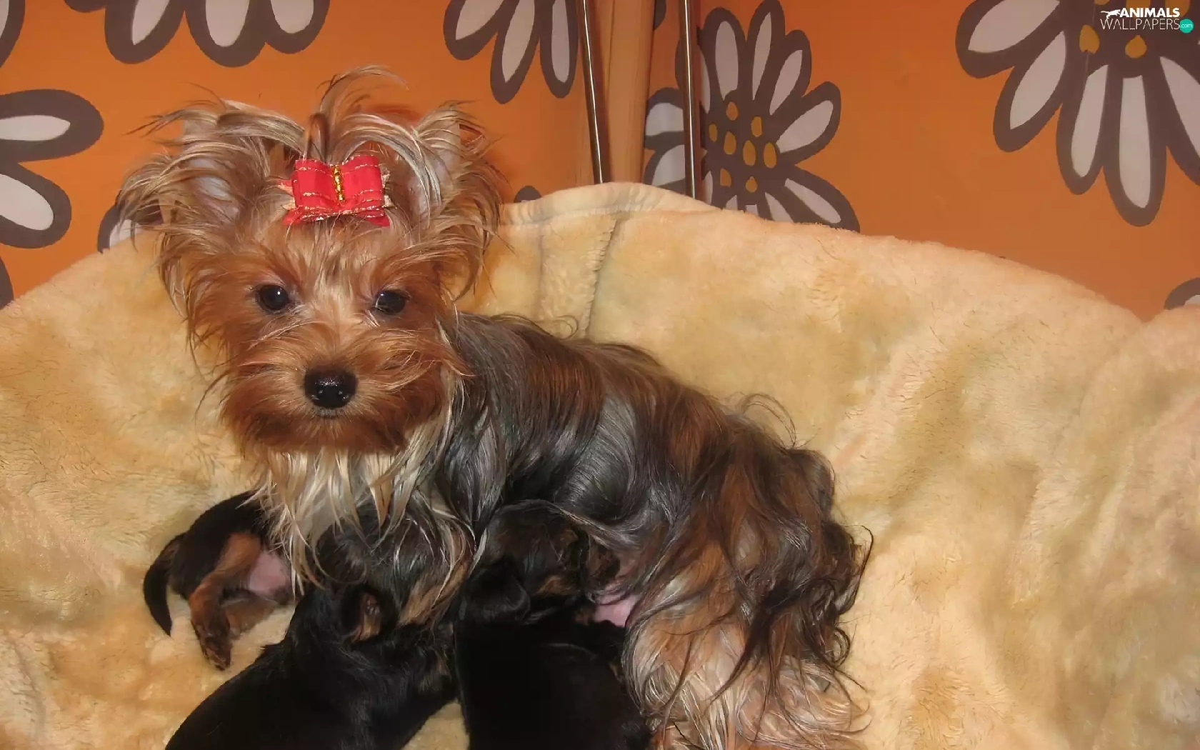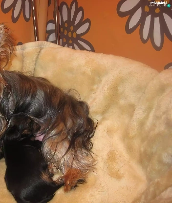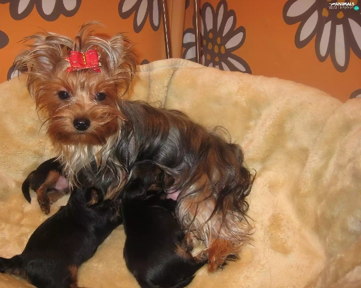 puppies, Yorkshire Terrier, bitch, Three, lactescent