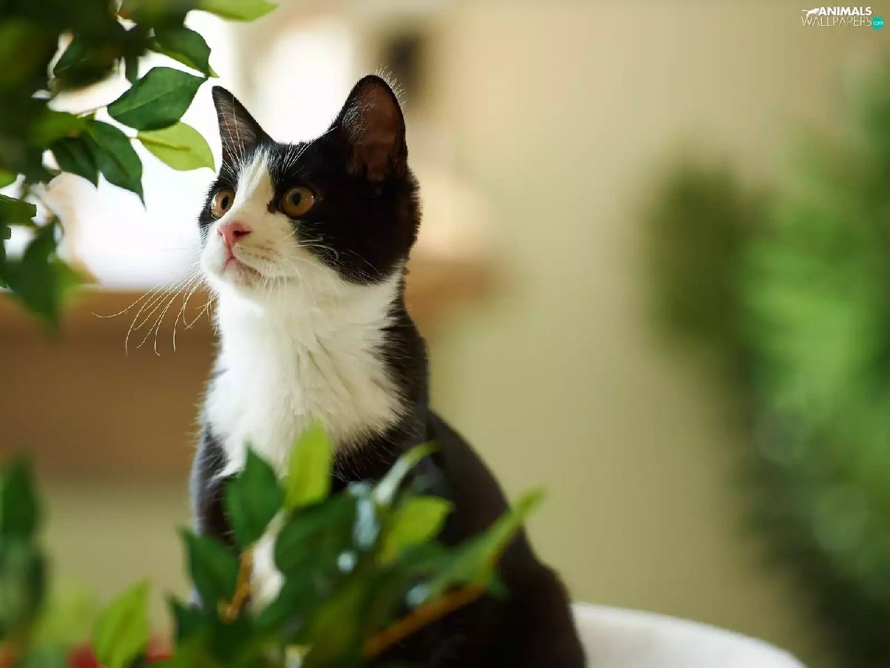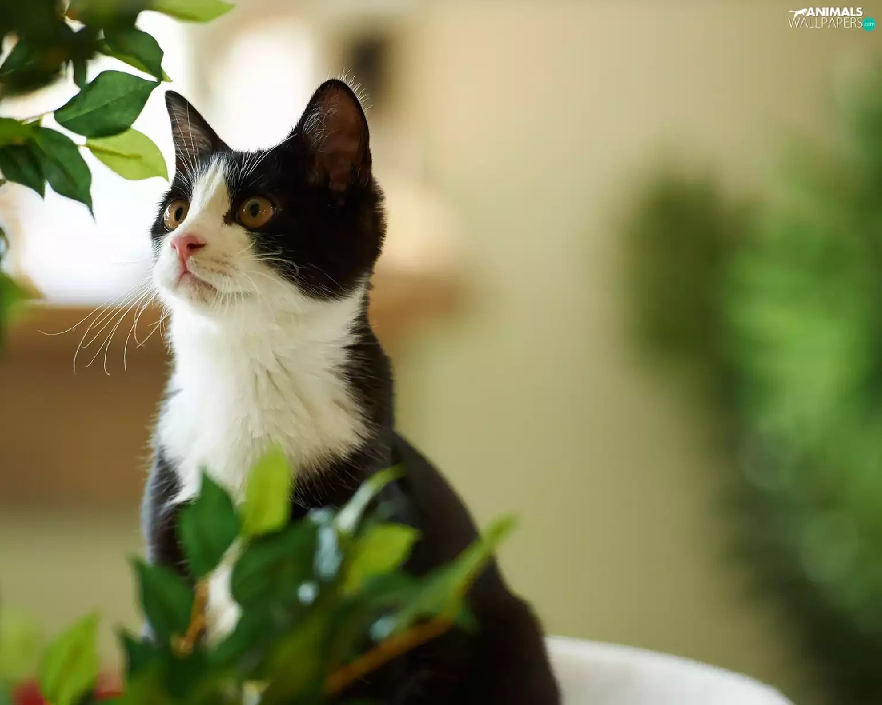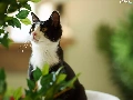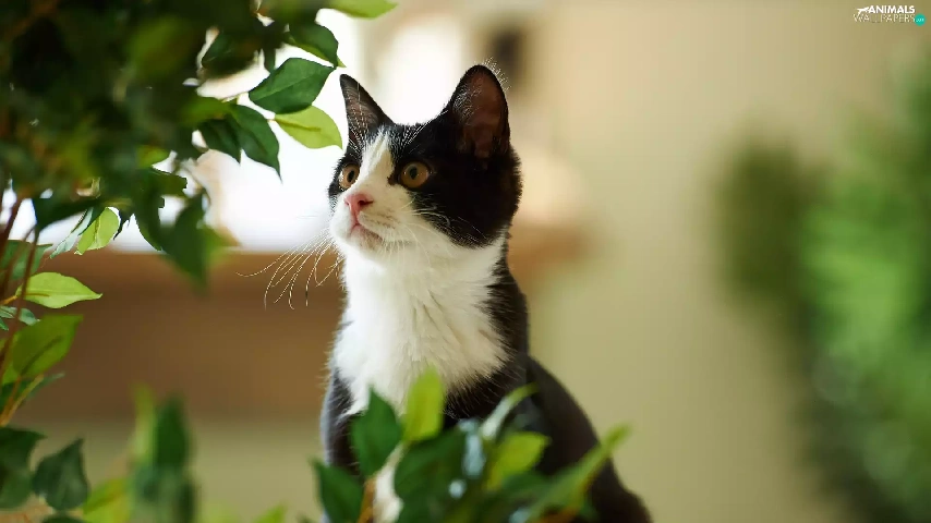 Leaf, black and White, cat