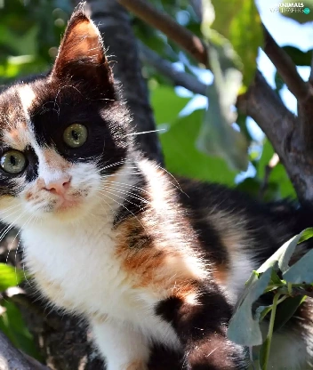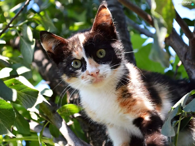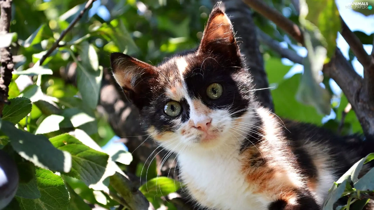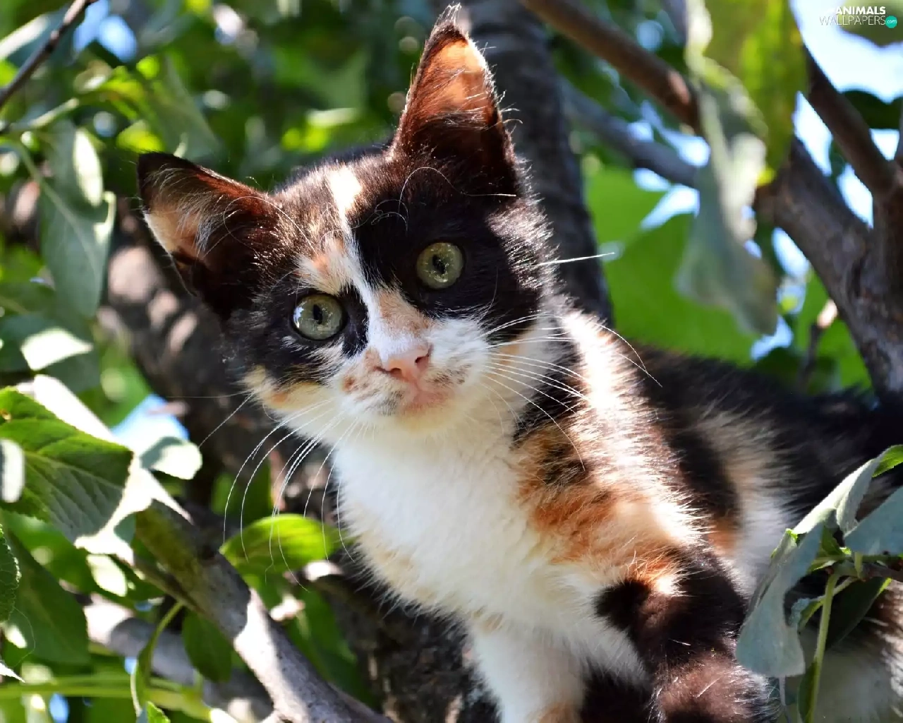 trees, black and White, kitten