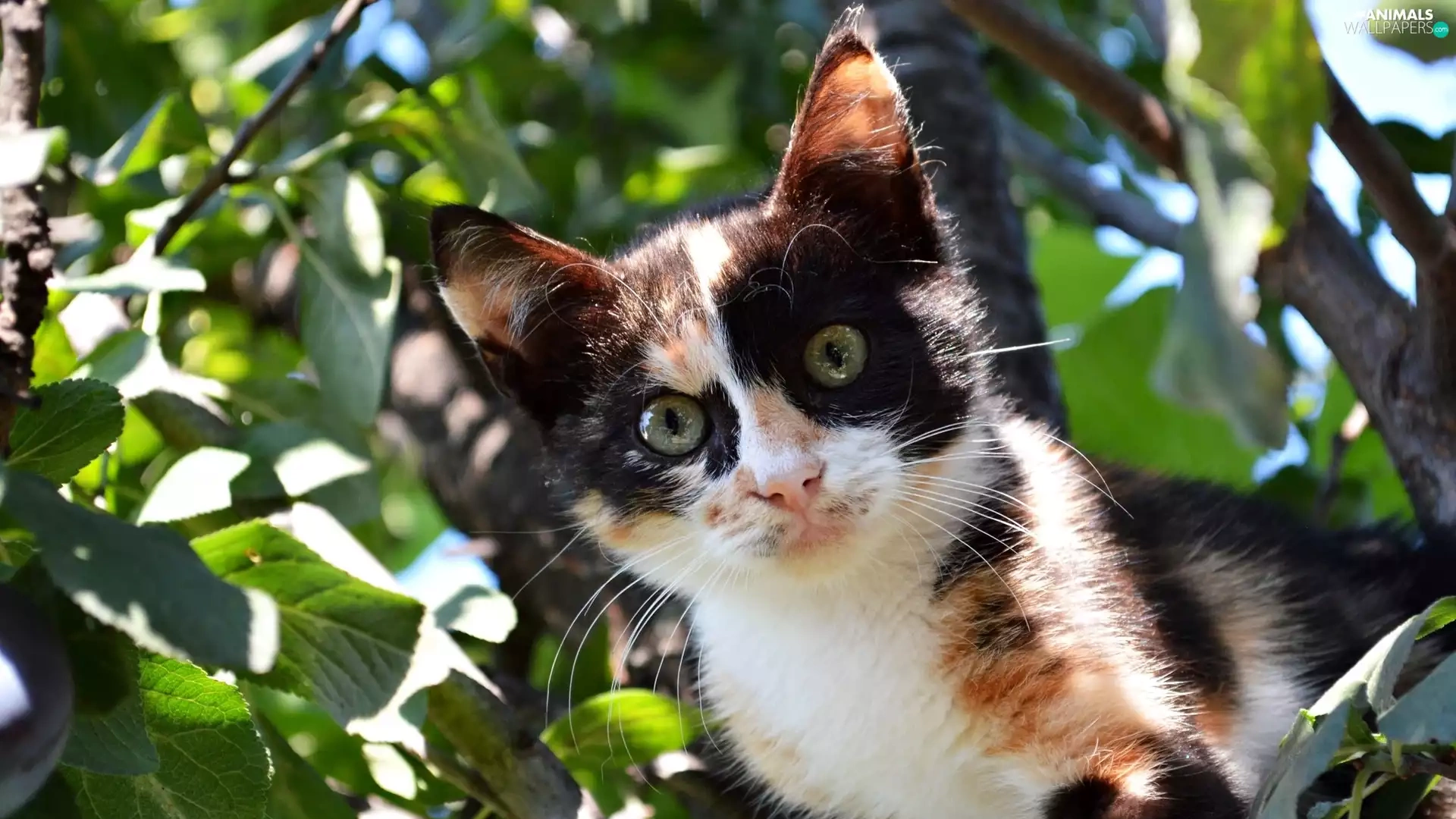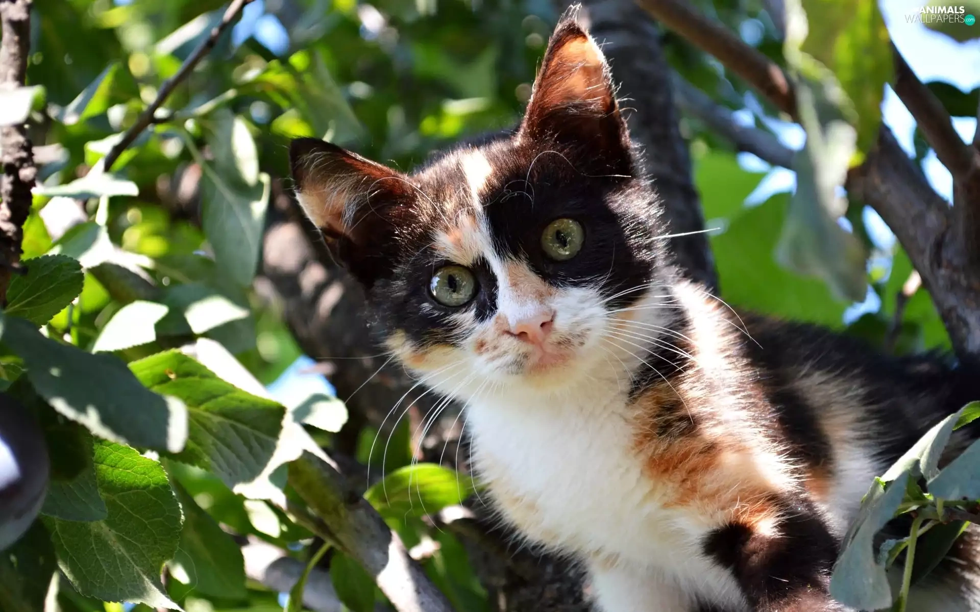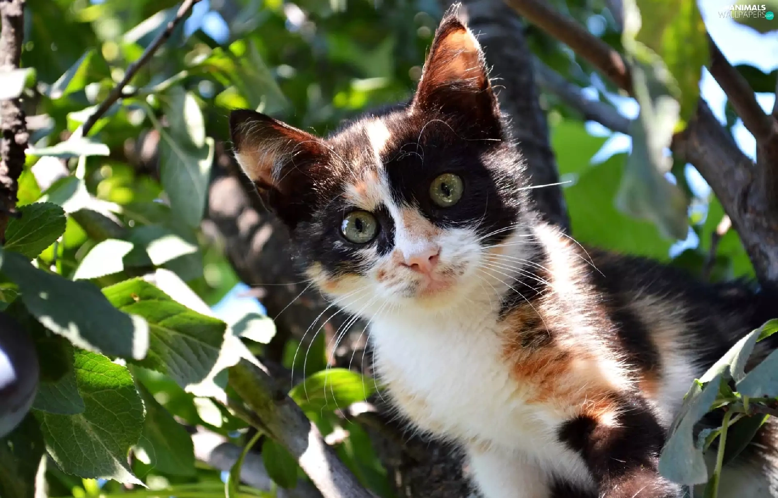 trees, black and White, kitten