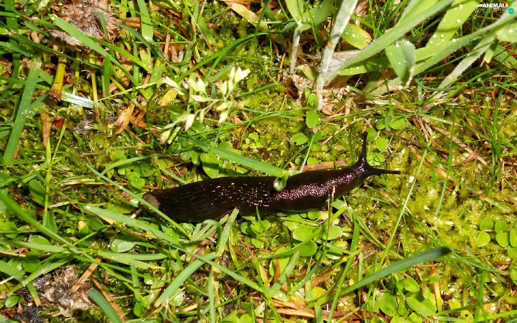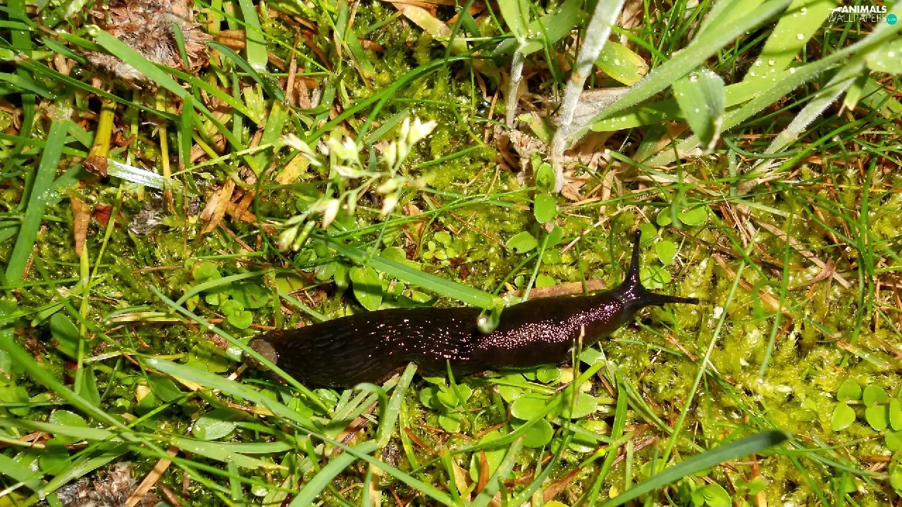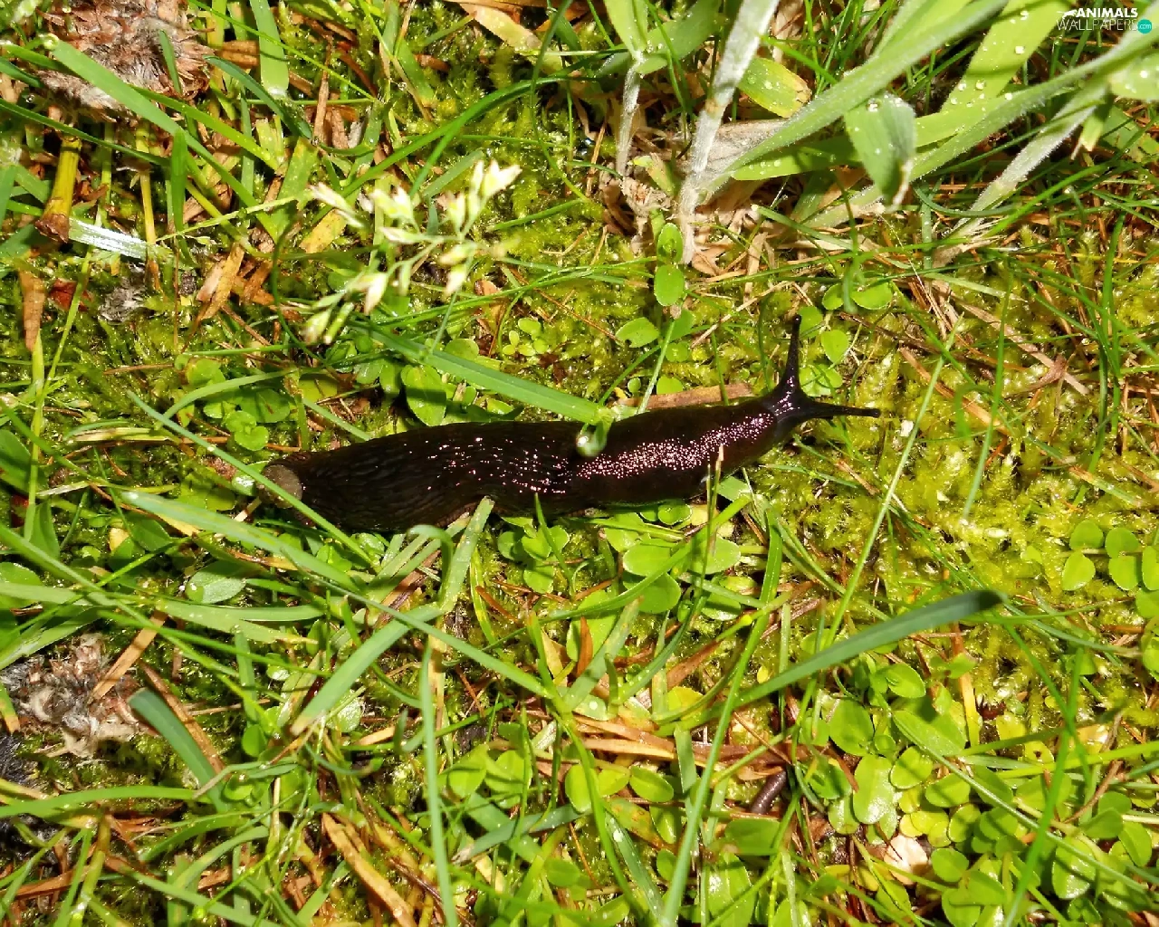 Big, snail, grass, Black