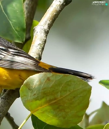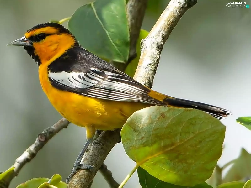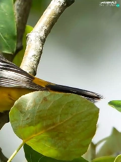 twig, Leaf, wagtail, Black-head, Bird