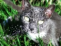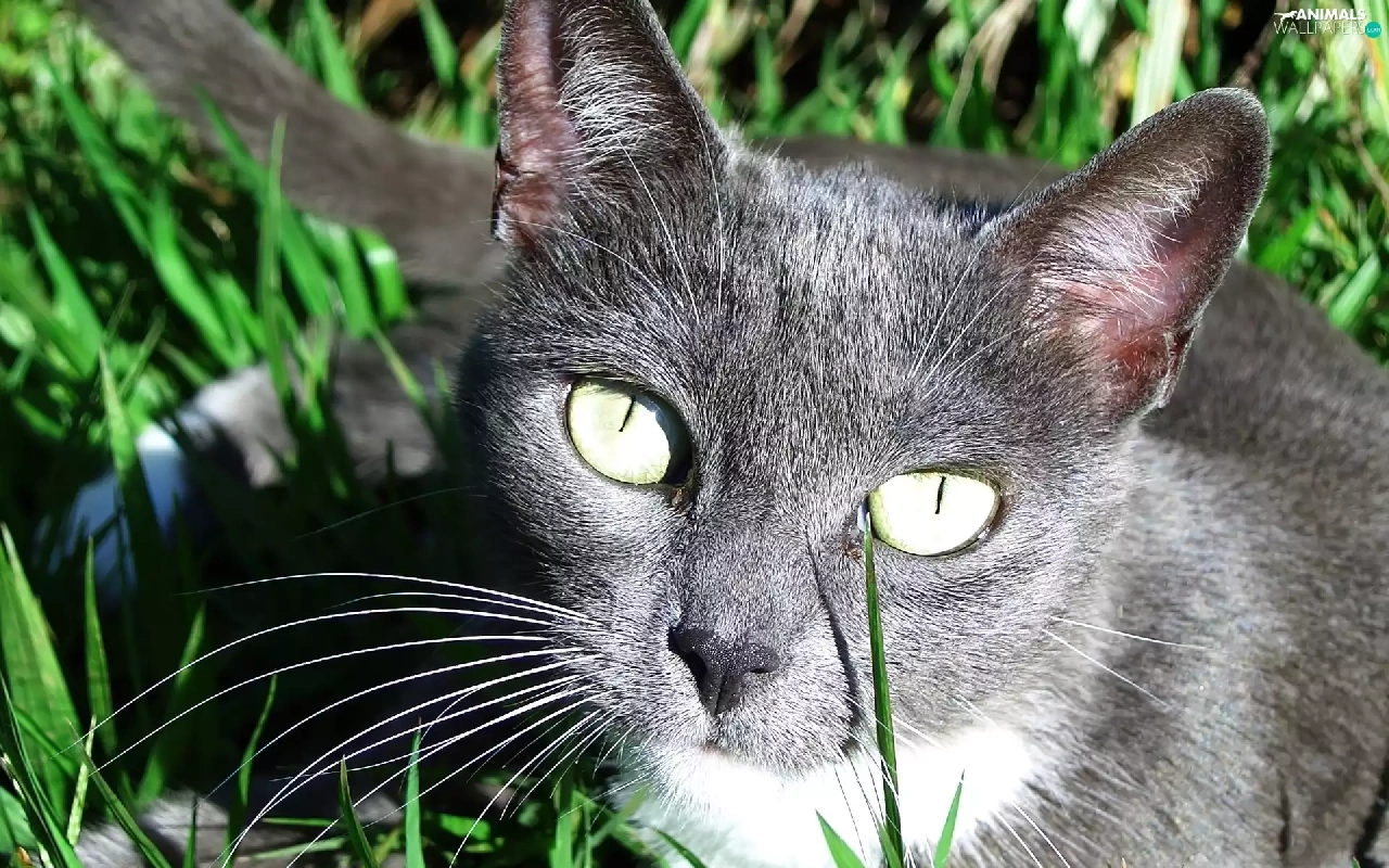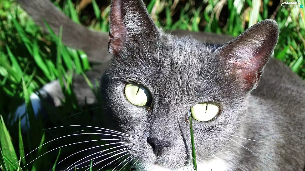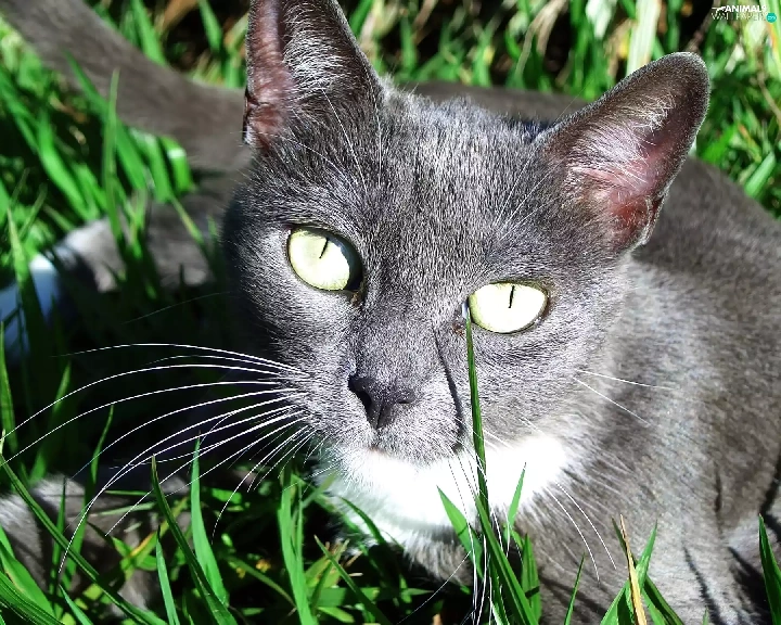 green ones, Eyes, Black, cat, grass