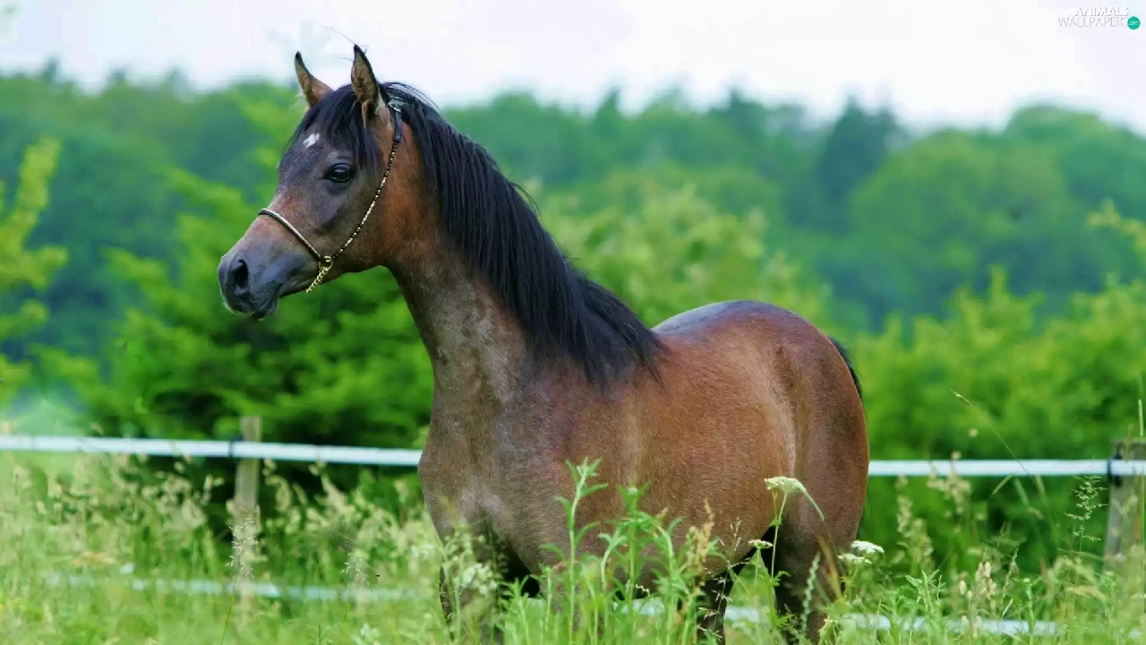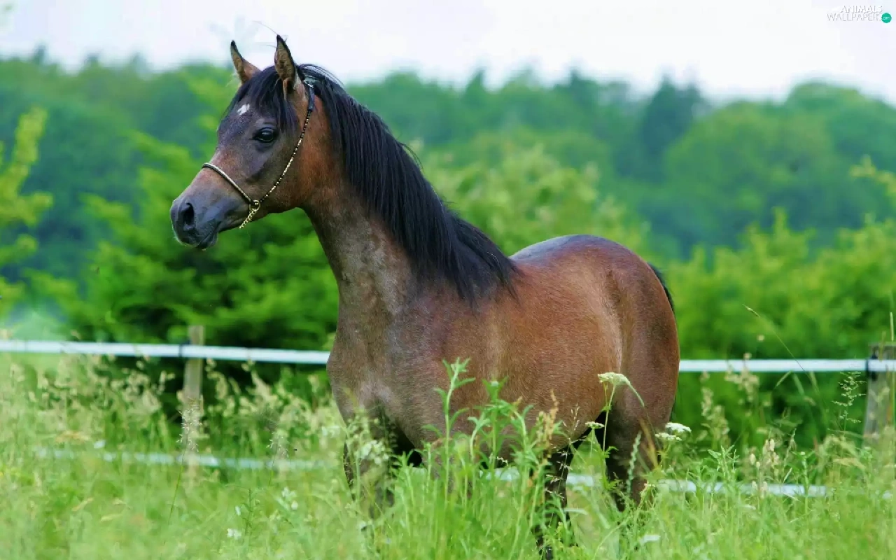 Horse, mane, fence, black