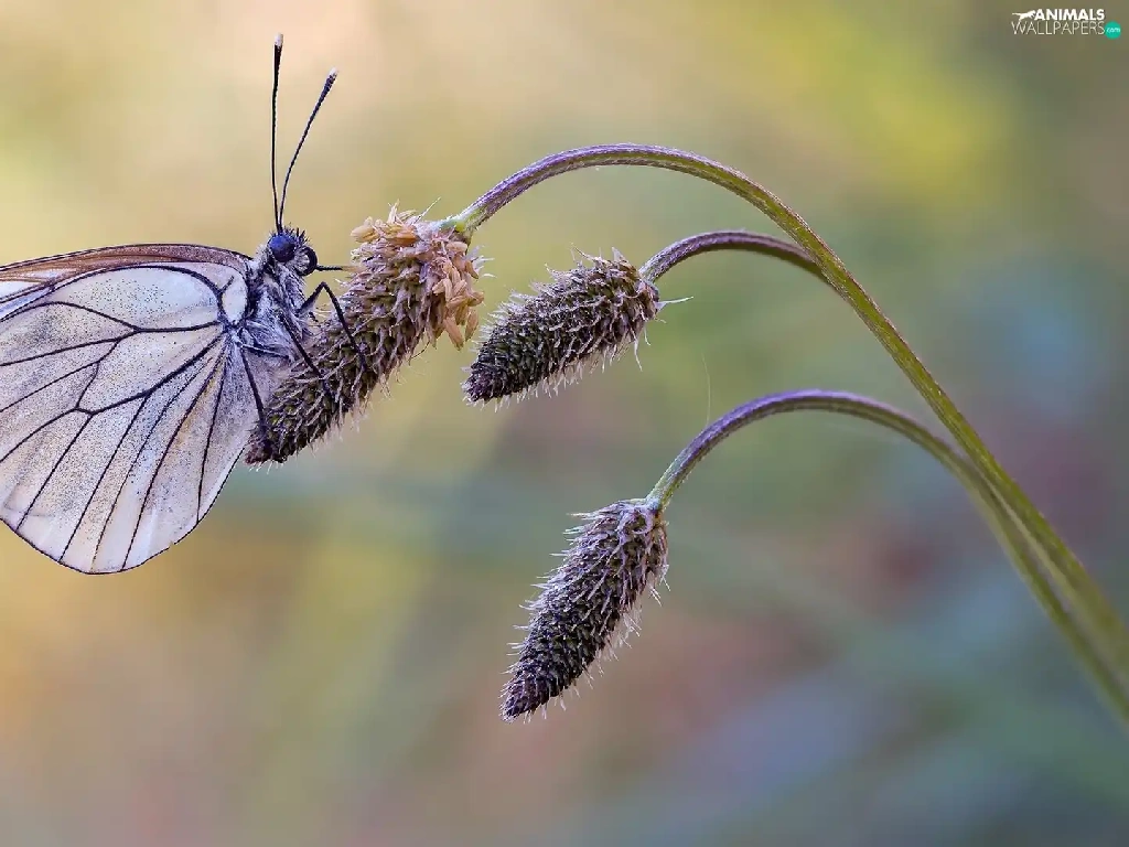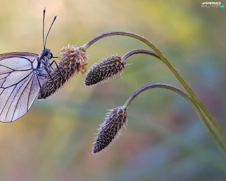 plant, butterfly, Black-veined White