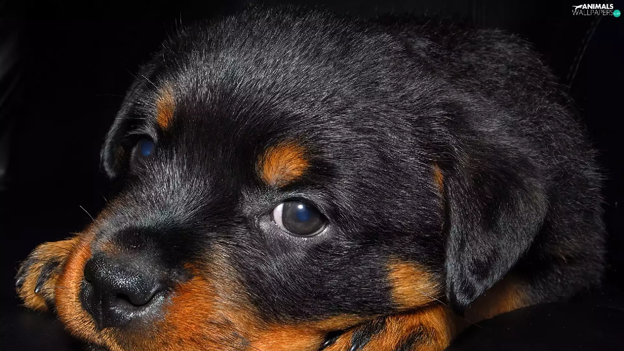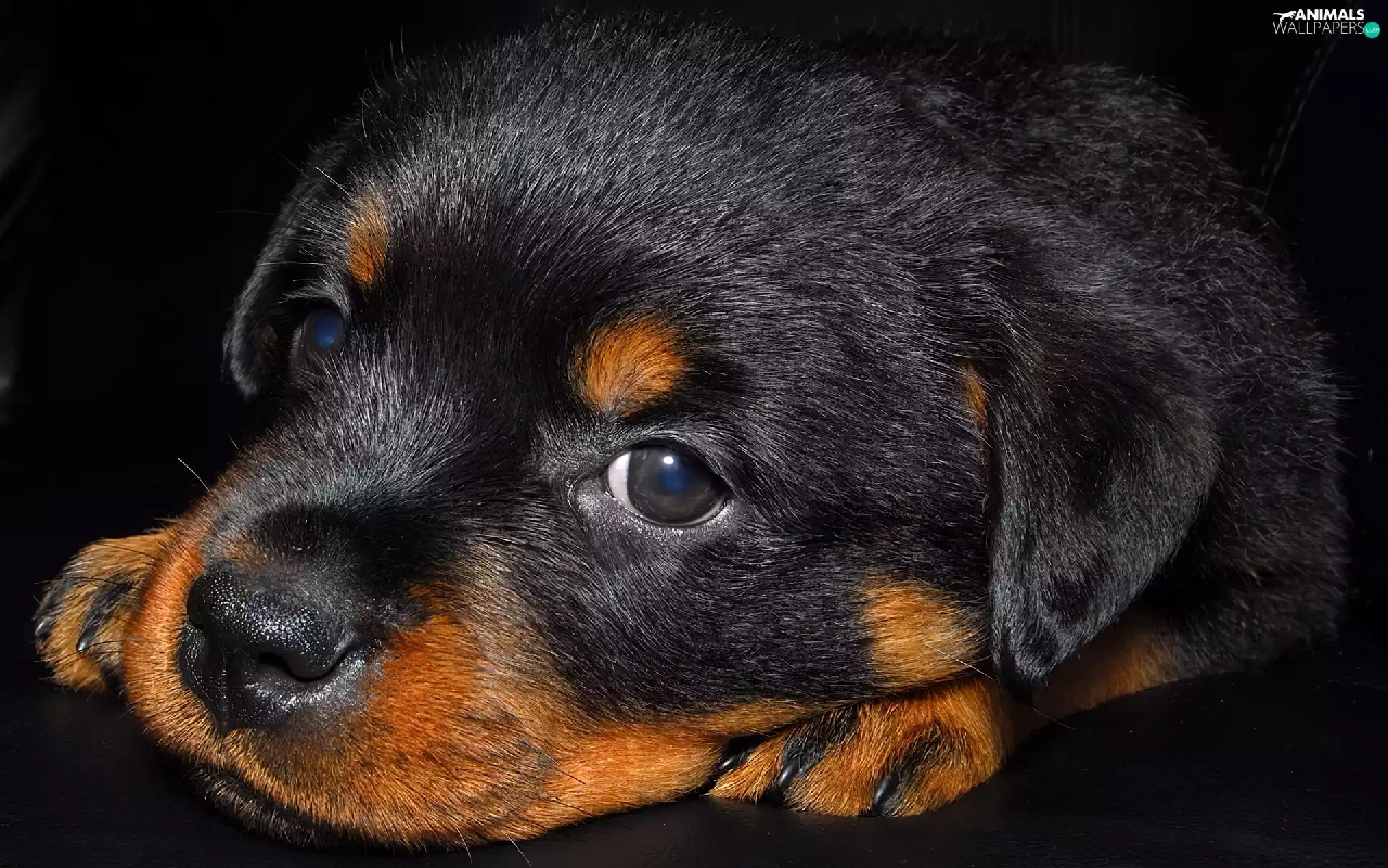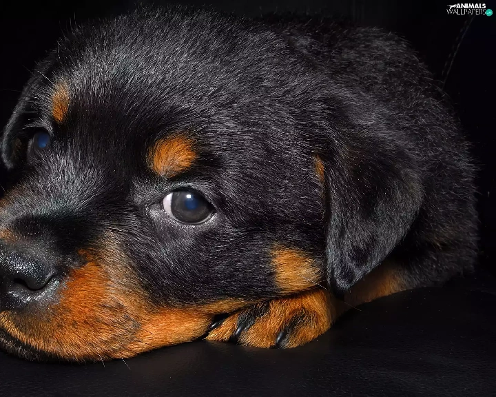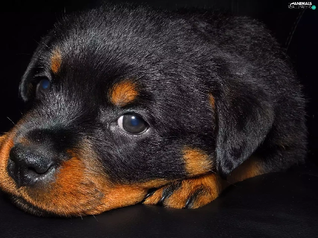 small, puppie, Rottweiler, Black