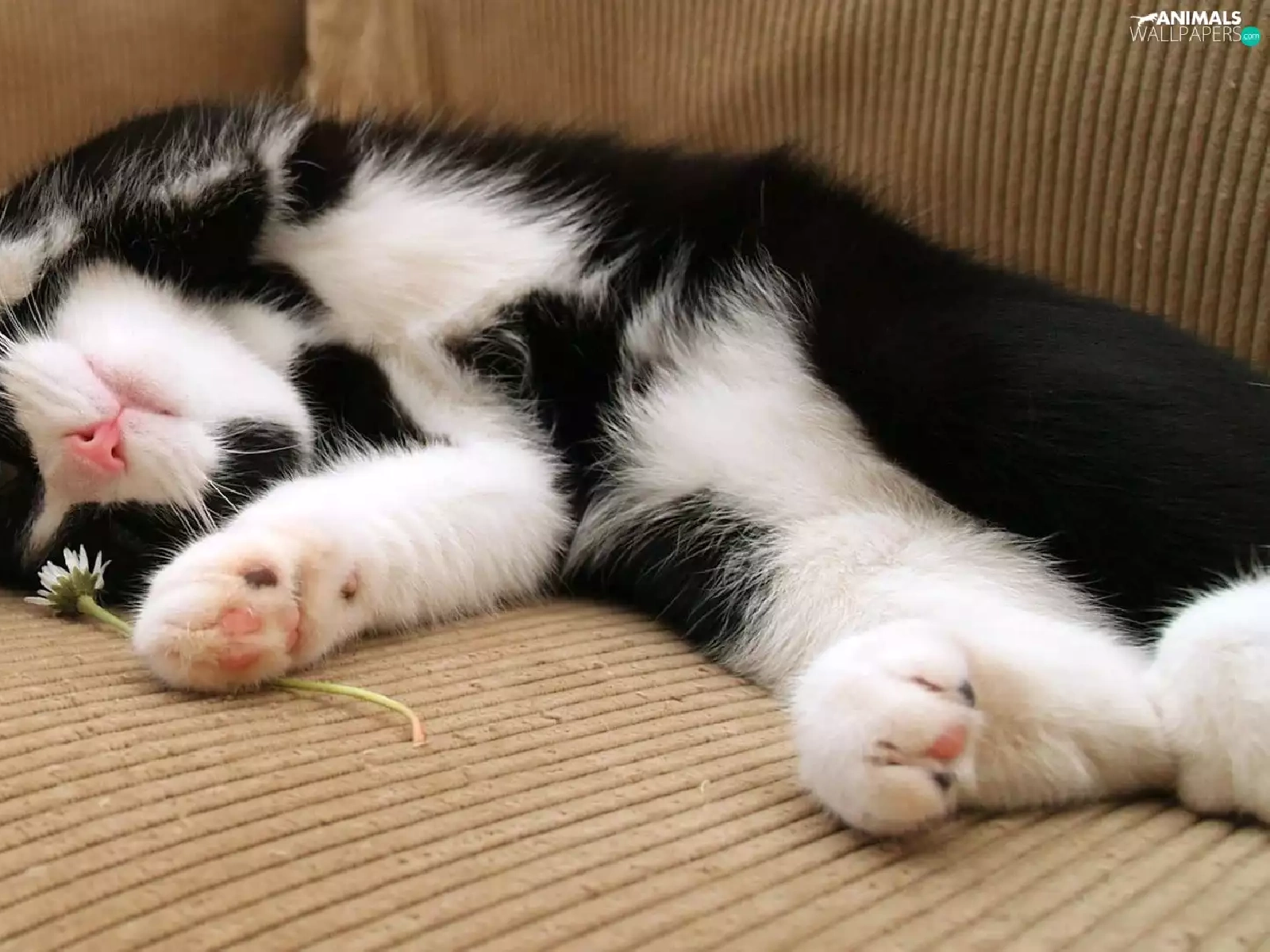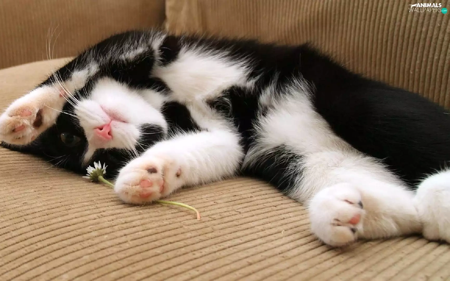 white, kitten, Flower, Black