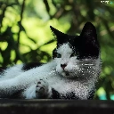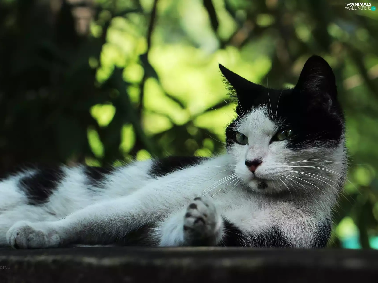 white, cat, resting, Black