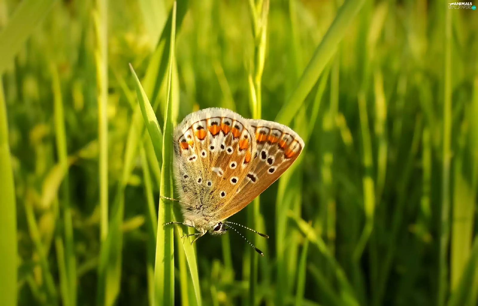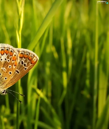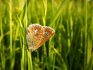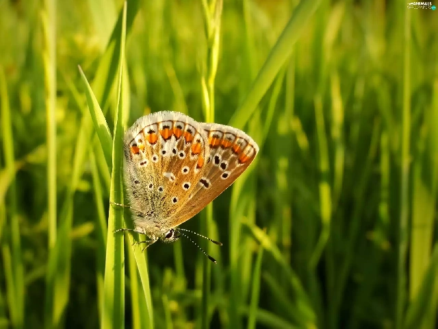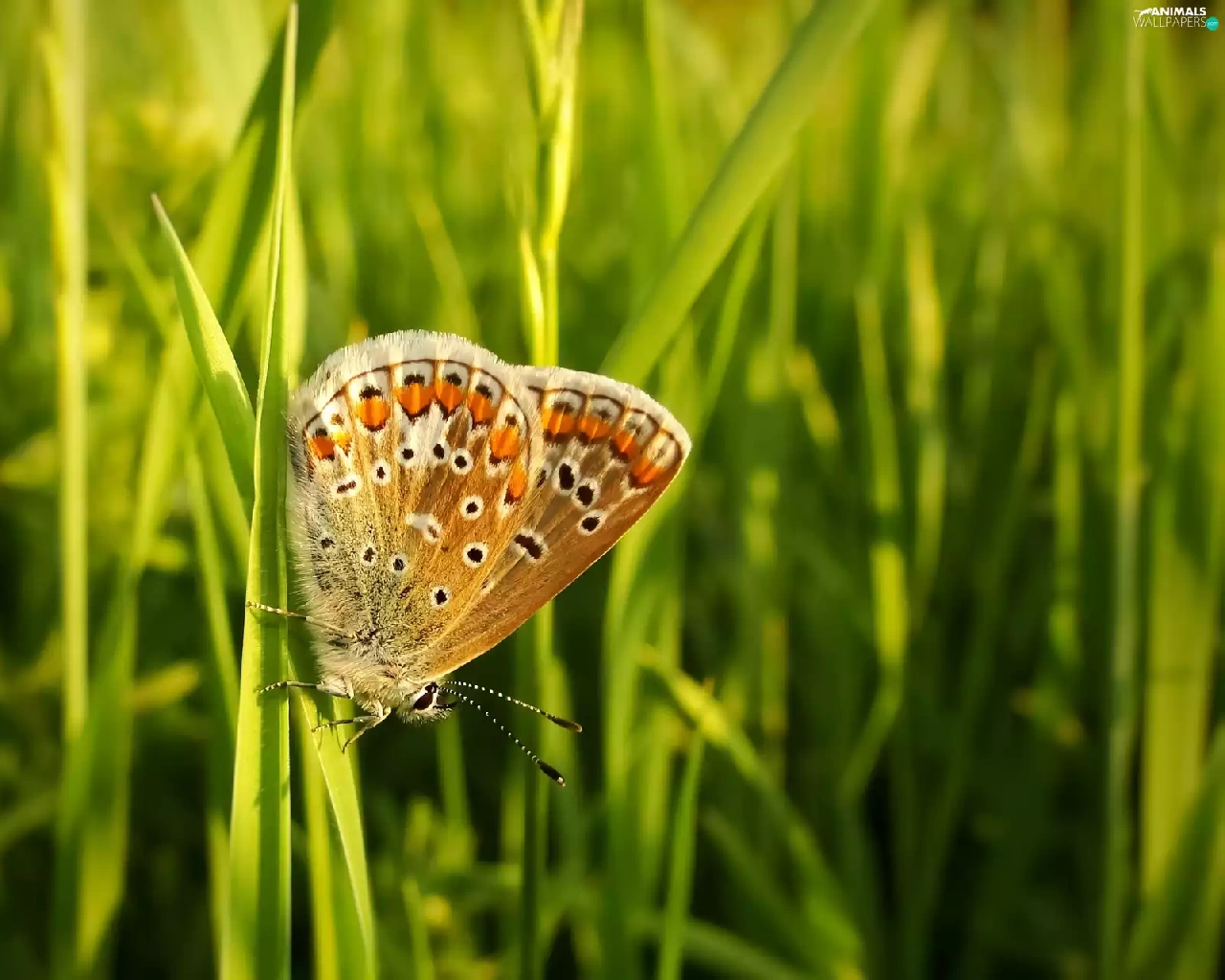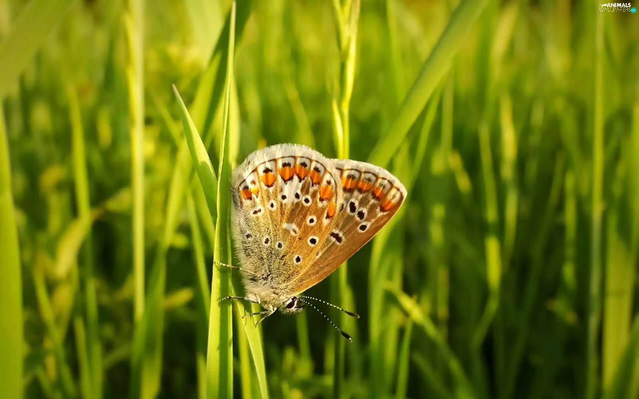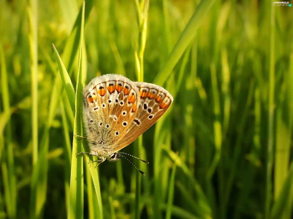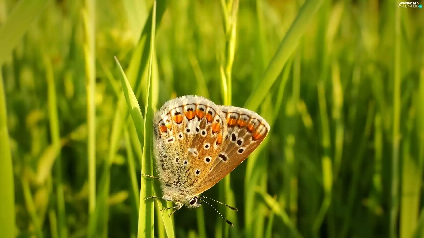 butterfly, blades, grass, Aricia Agestis