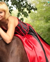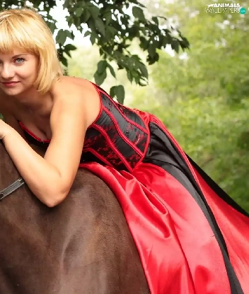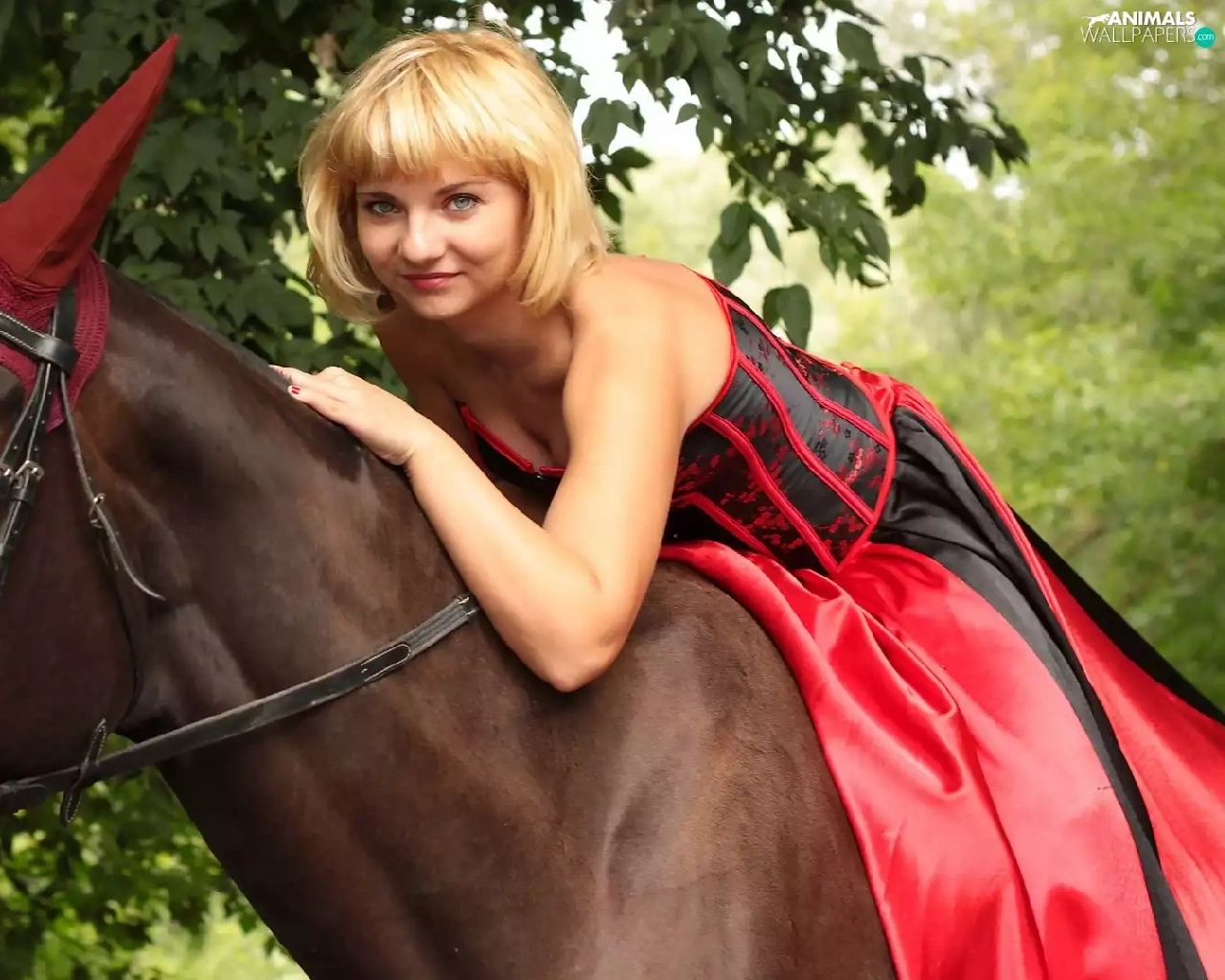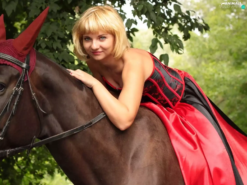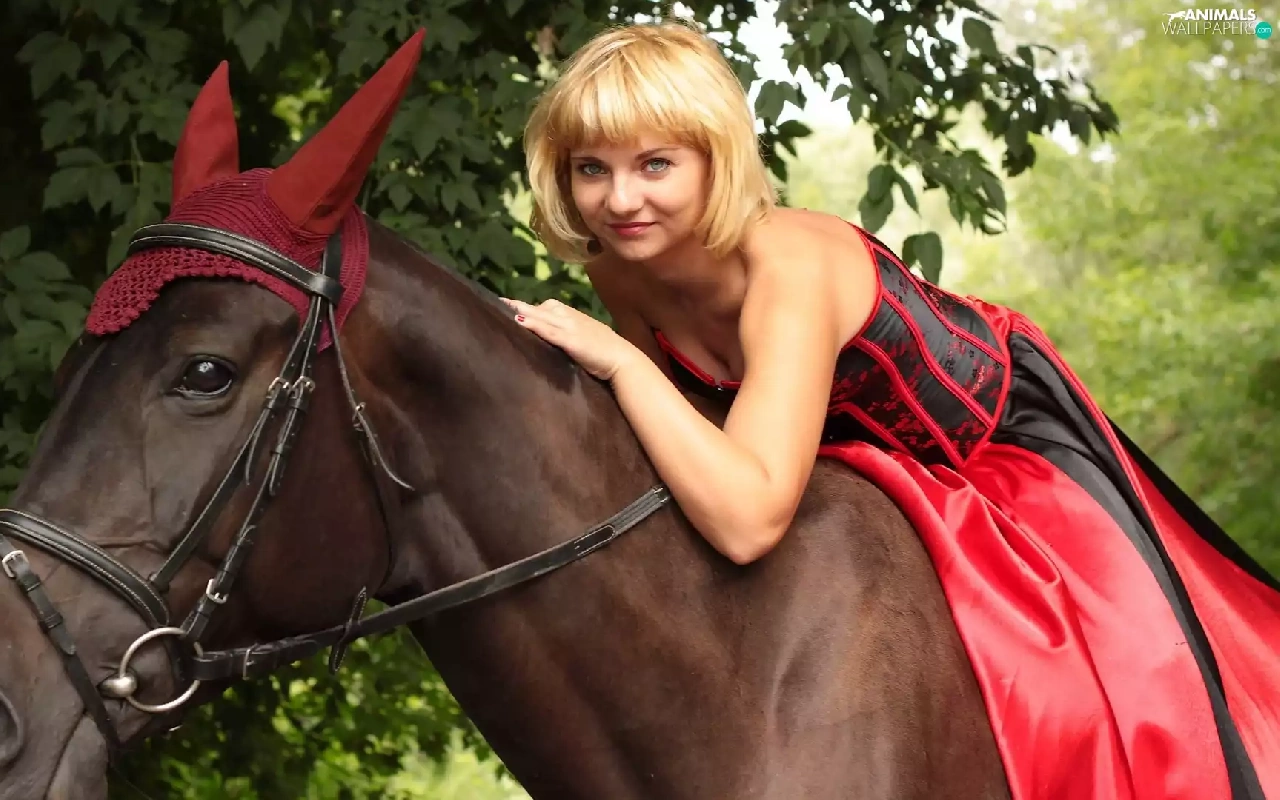 Women, Horse, ears, Blonde
