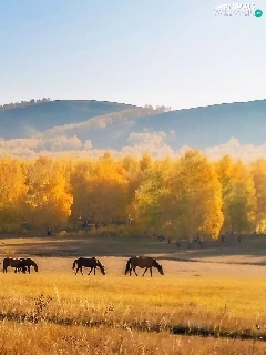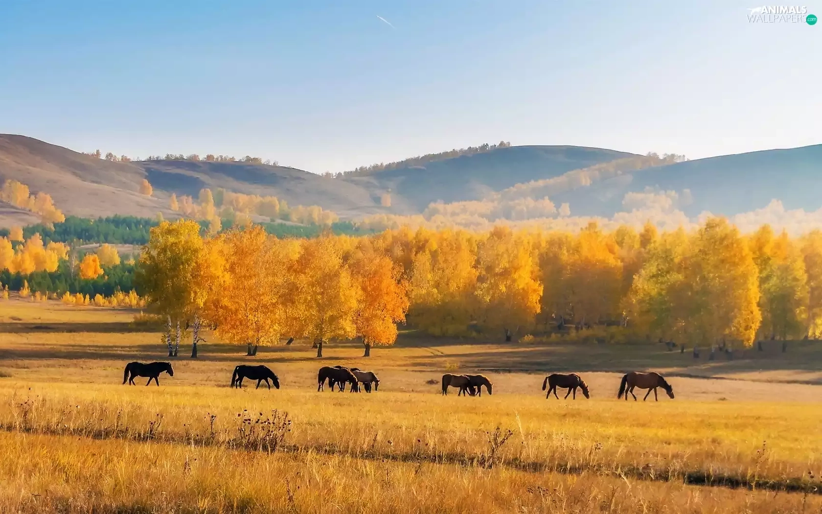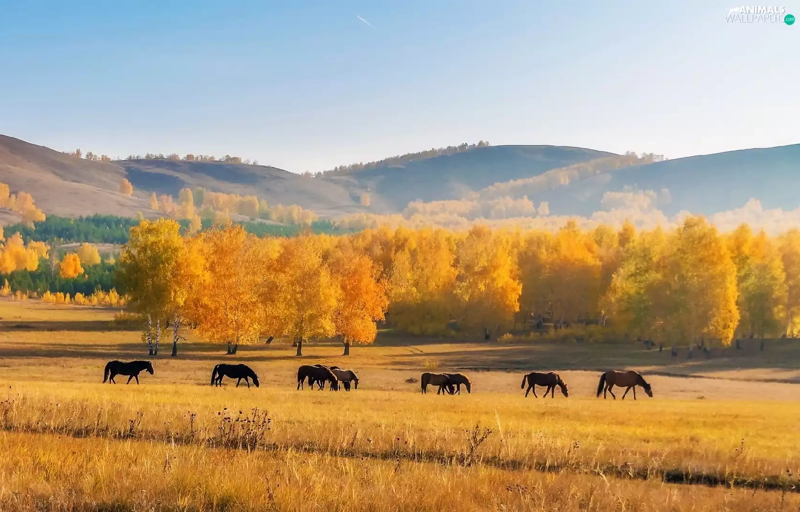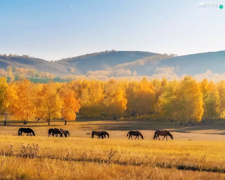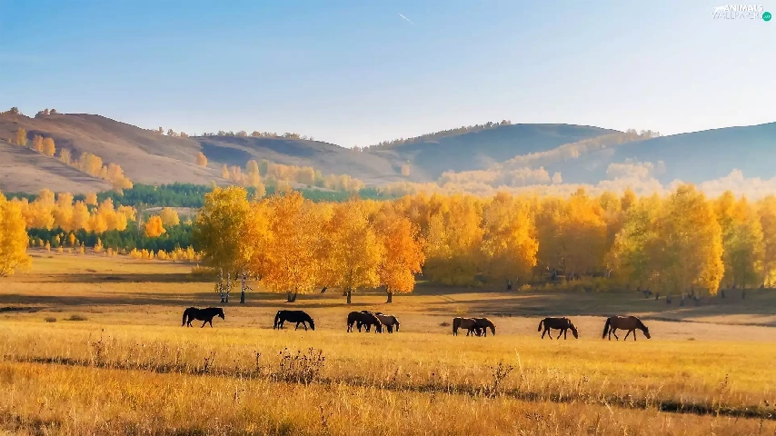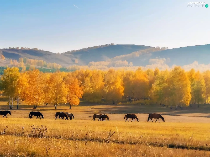 Meadow, The Hills, viewes, Field, autumn, trees, bloodstock