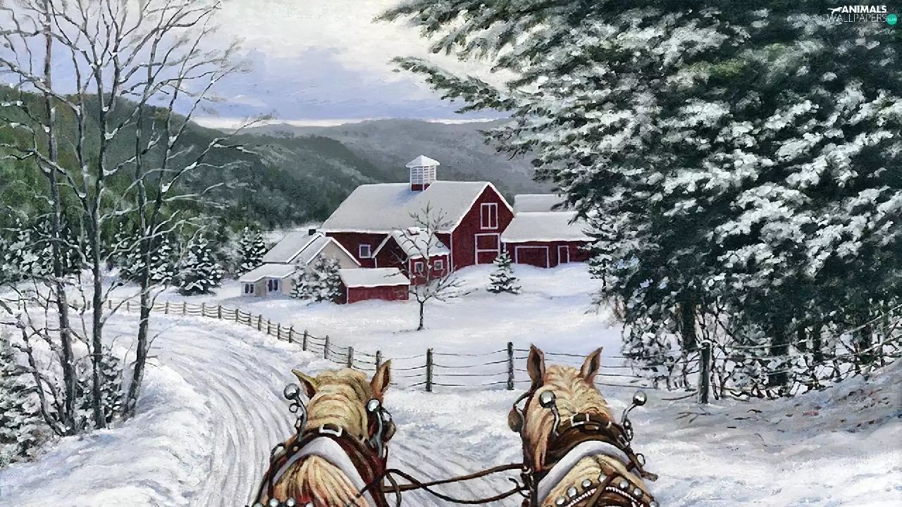 Way, winter, painting, bloodstock