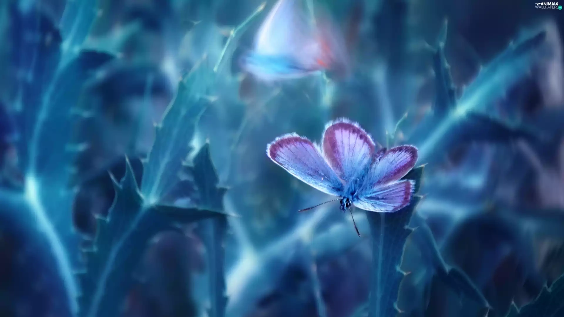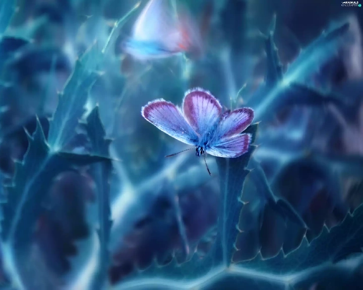 butterfly, plant, Close, Blue