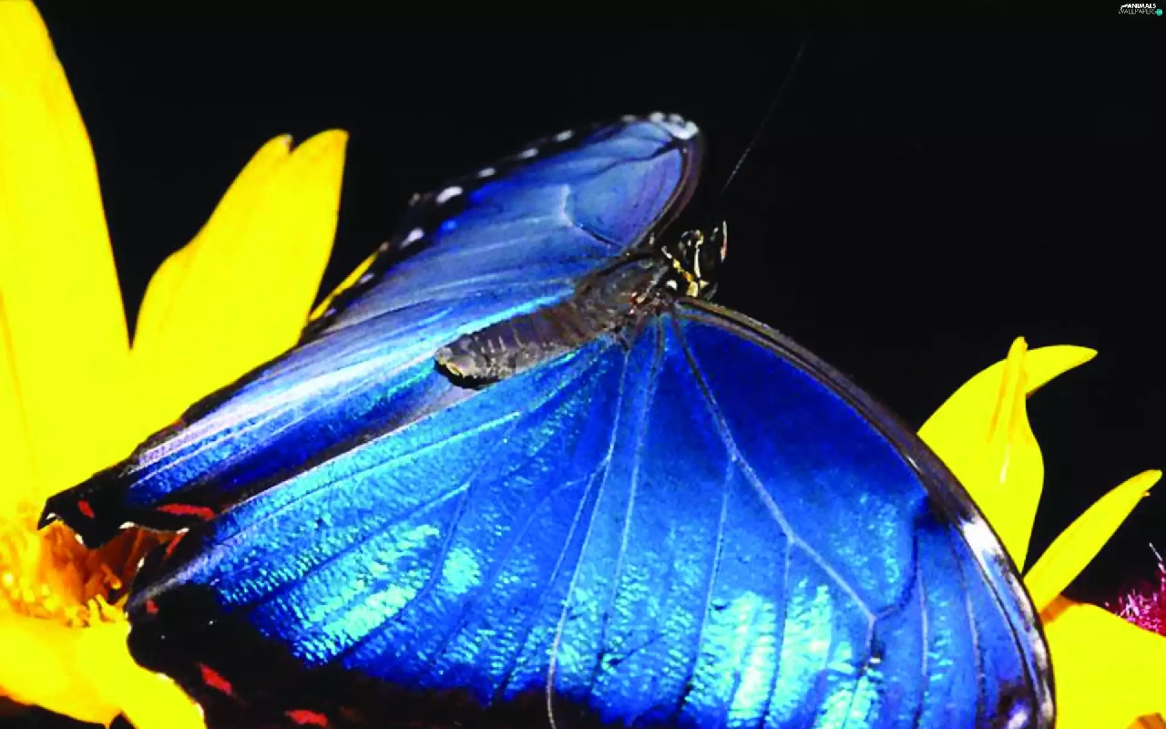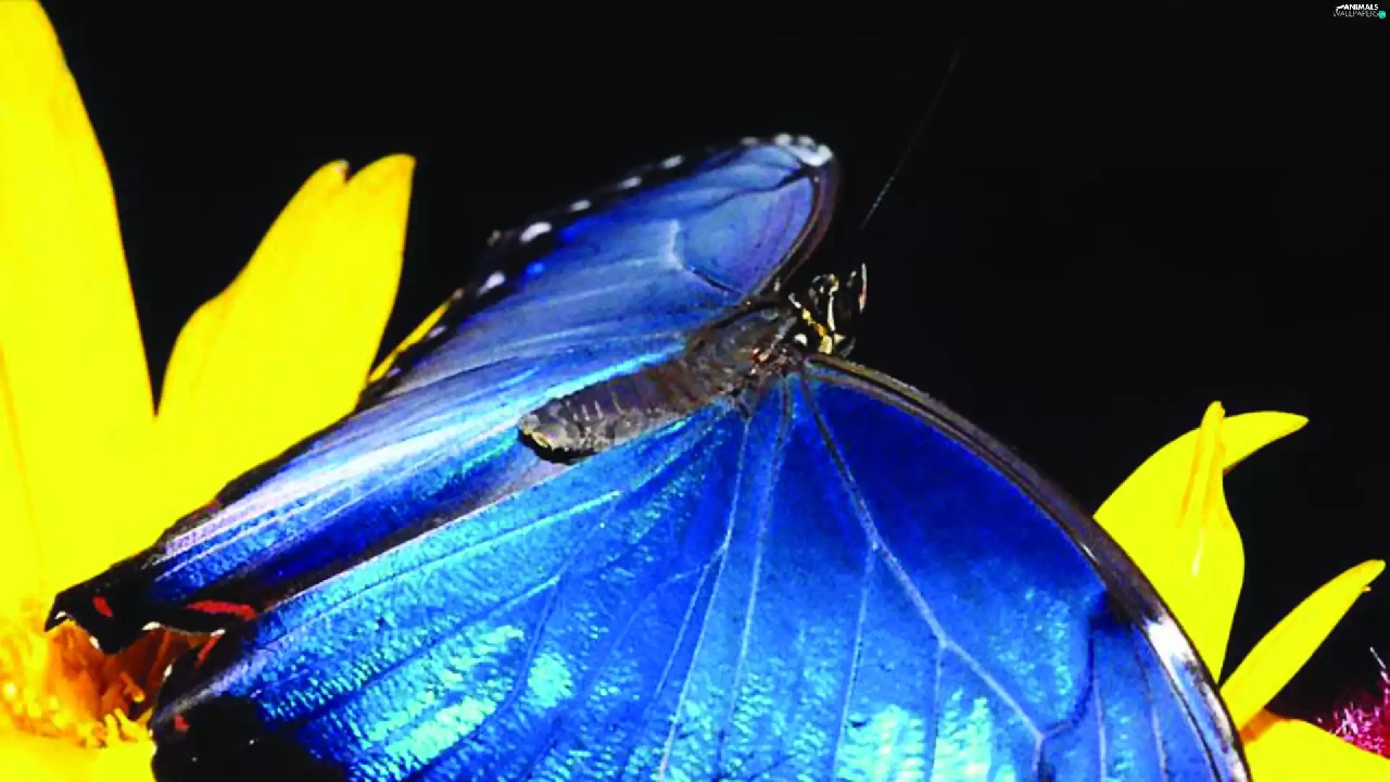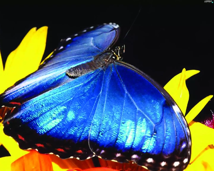 Colourfull Flowers, butterfly, blue