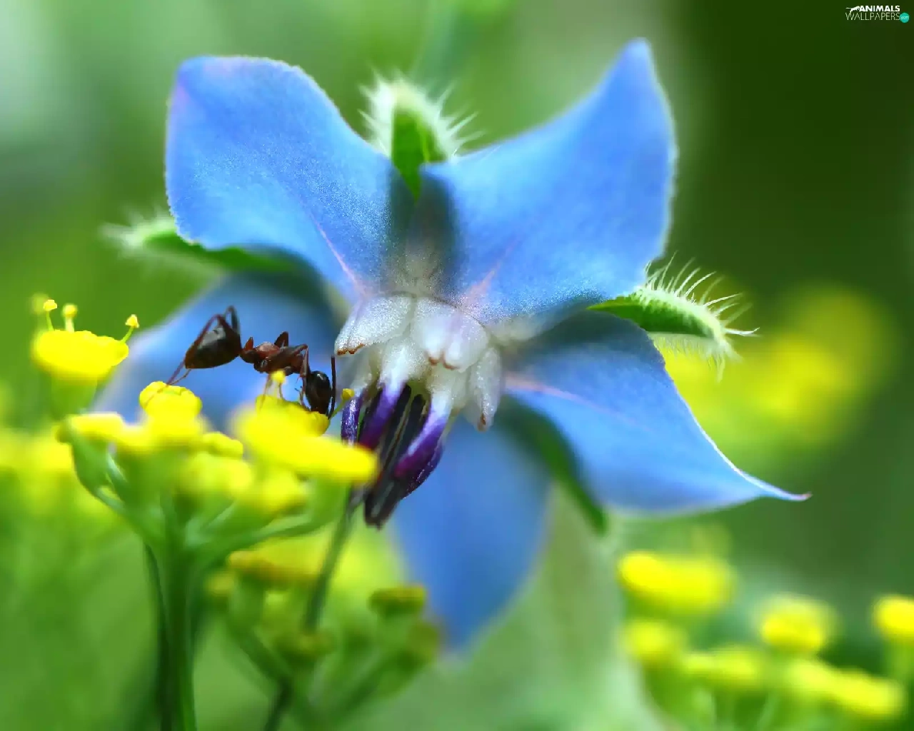 ant, blue, Colourfull Flowers, Insect