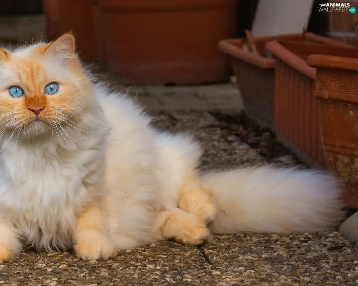 lying, Blue Eyed, cat, ginger