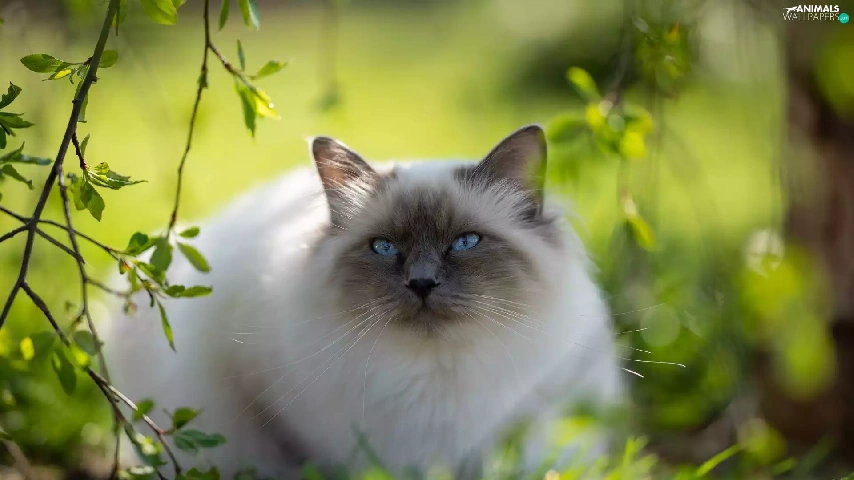 cat, Blue Eyed, green, Ragdoll