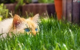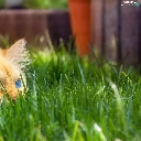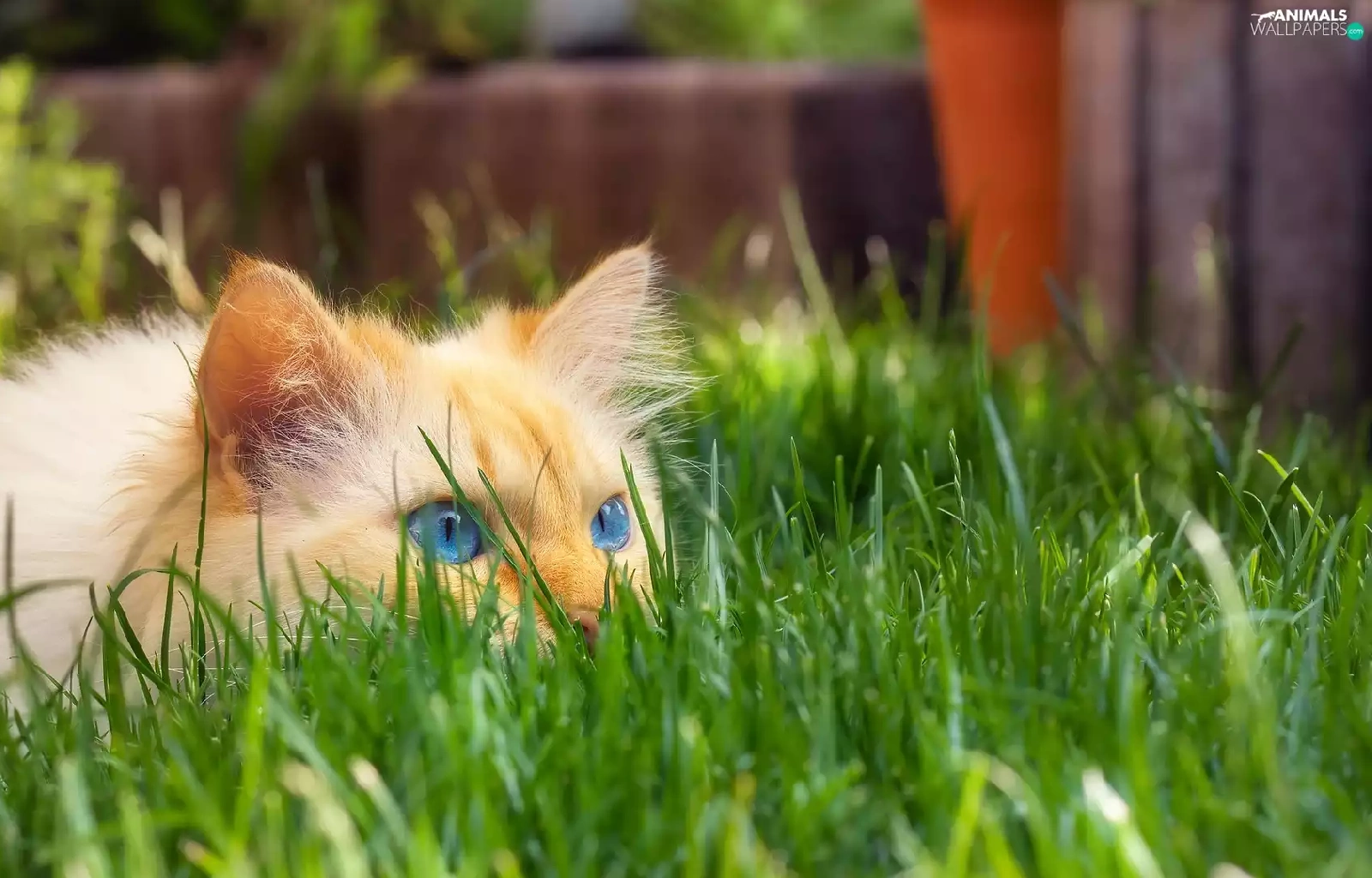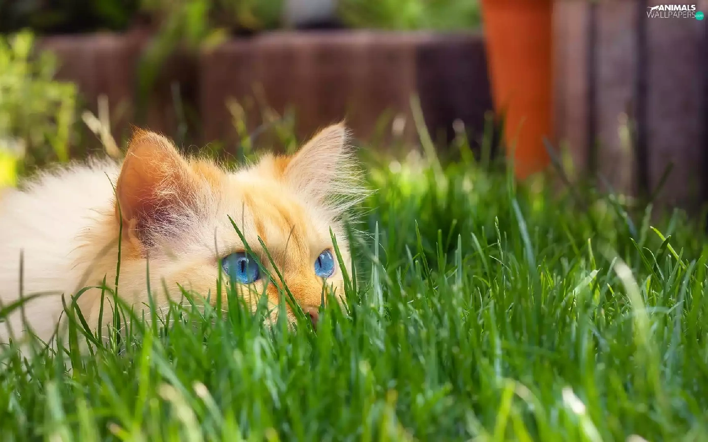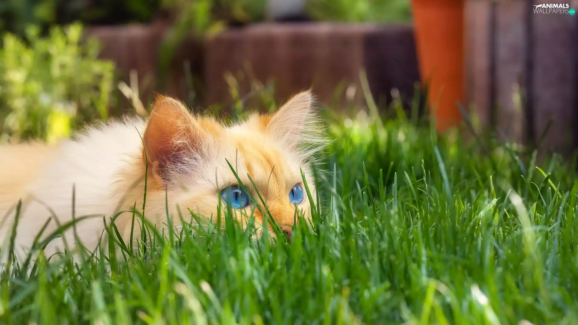 cat, grass, ginger, Blue Eyed, lurking