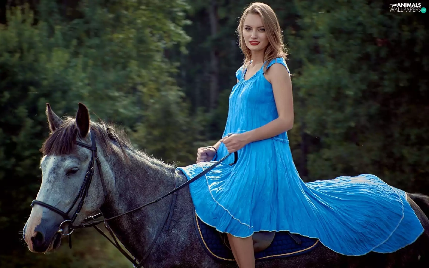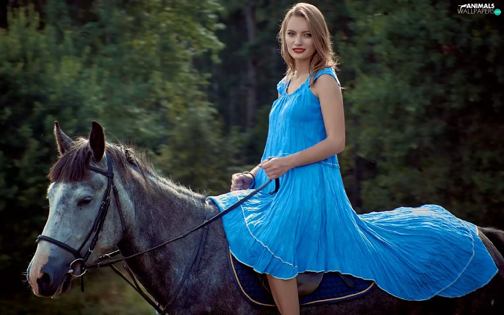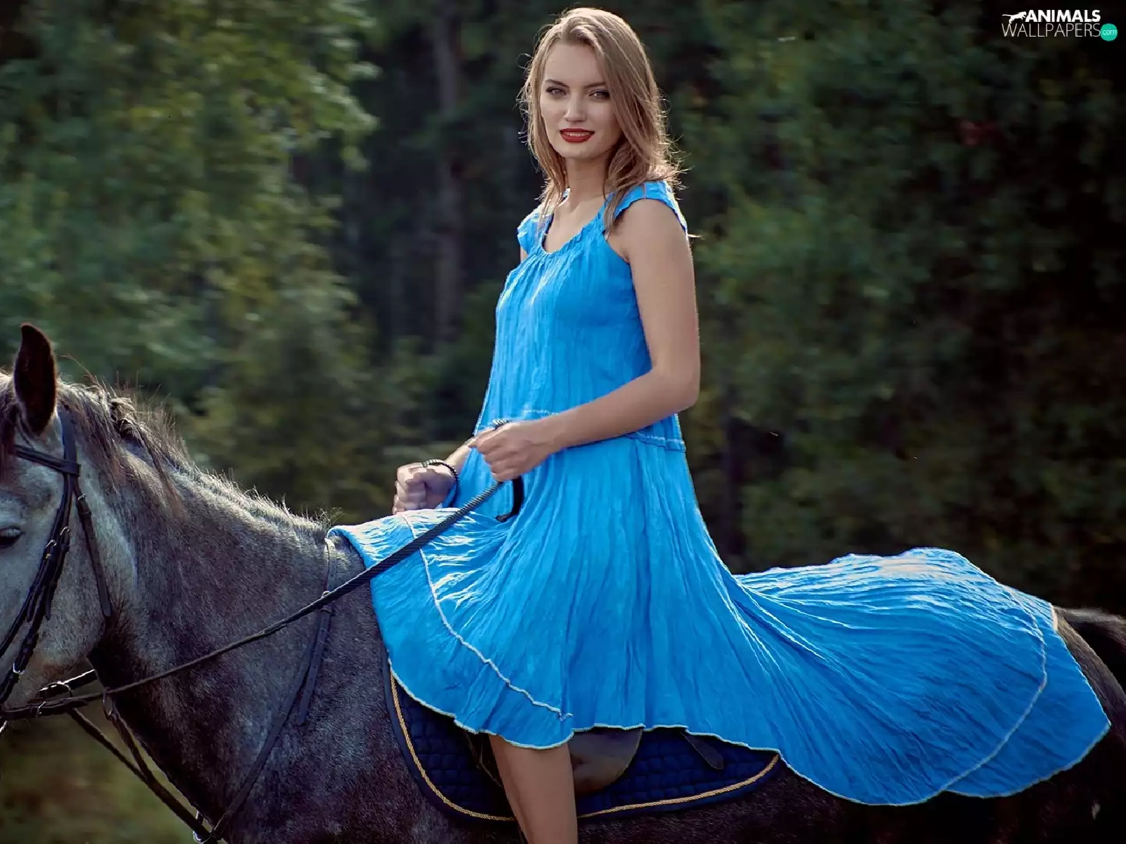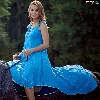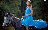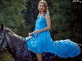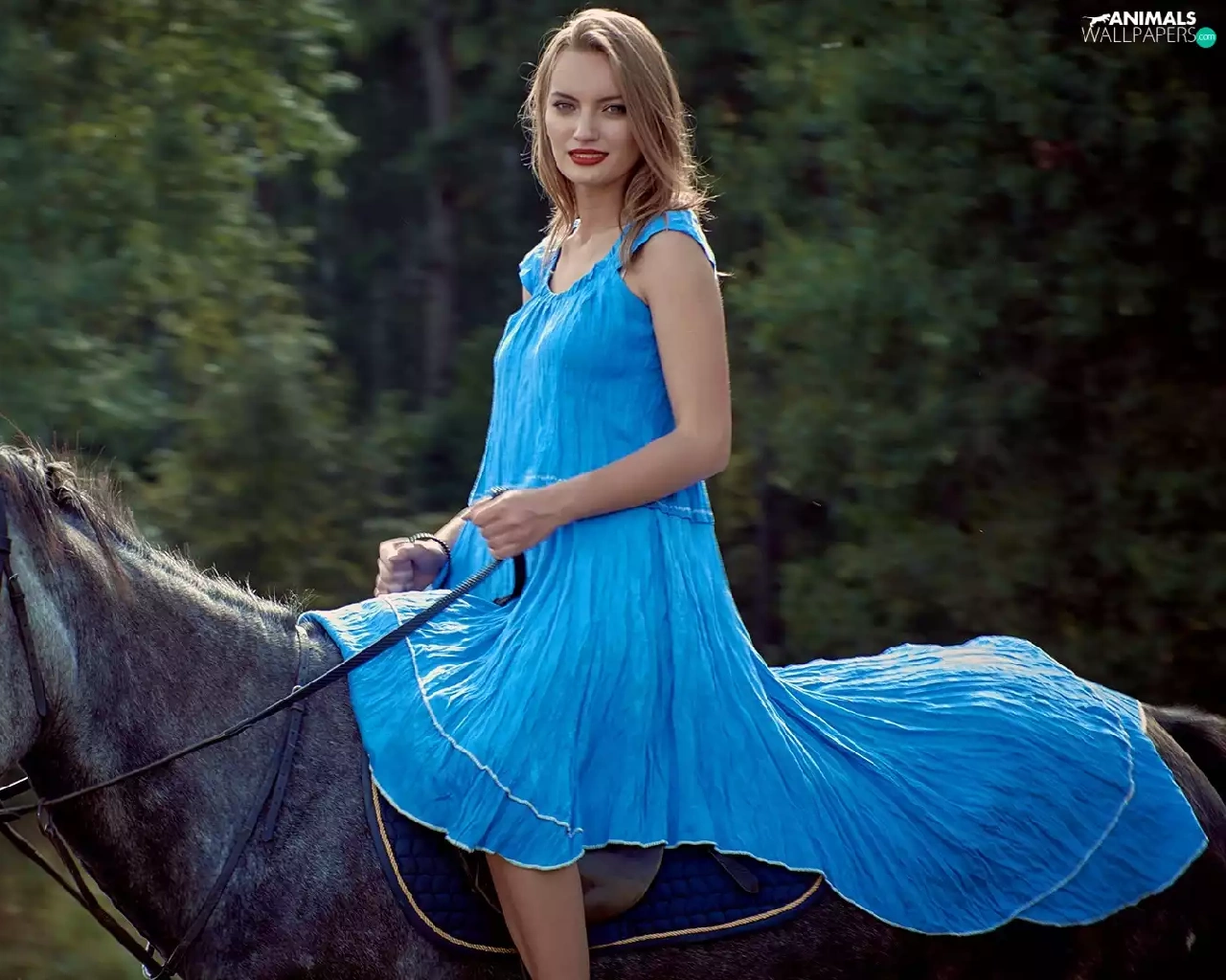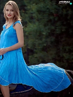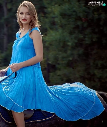 Women, dress, Horse, Blue
