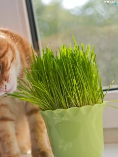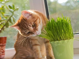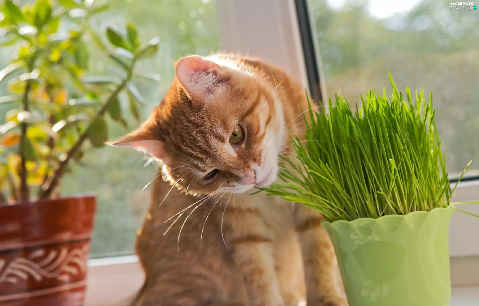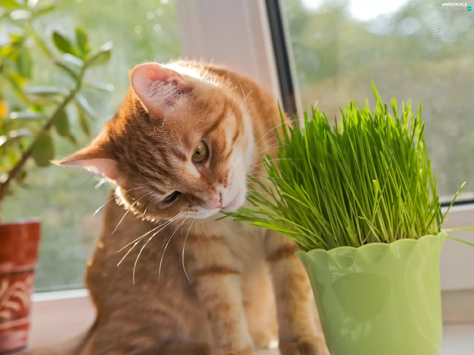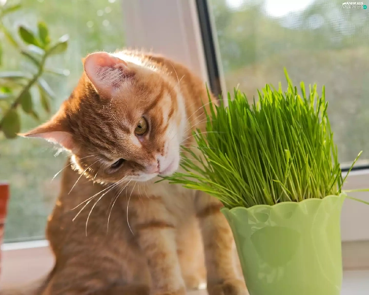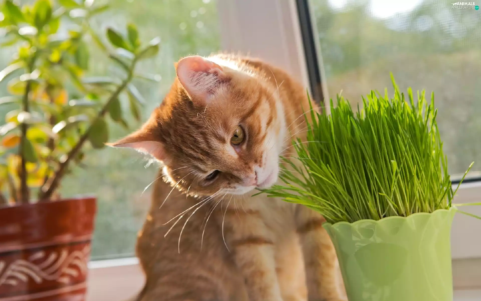 pot, blur, cat, plant, ginger
