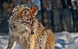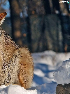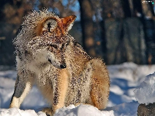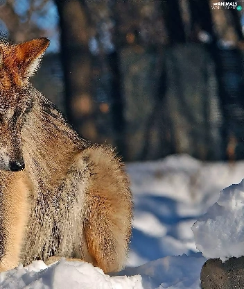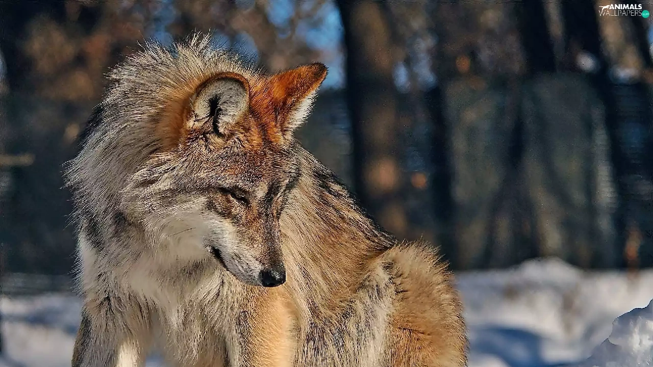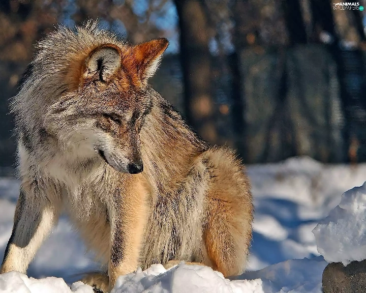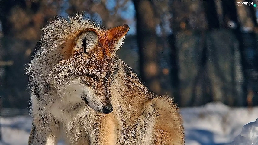 sun, Wolf, forest, luminosity, Przebijające, winter, In the Snow, blur, flash, ligh