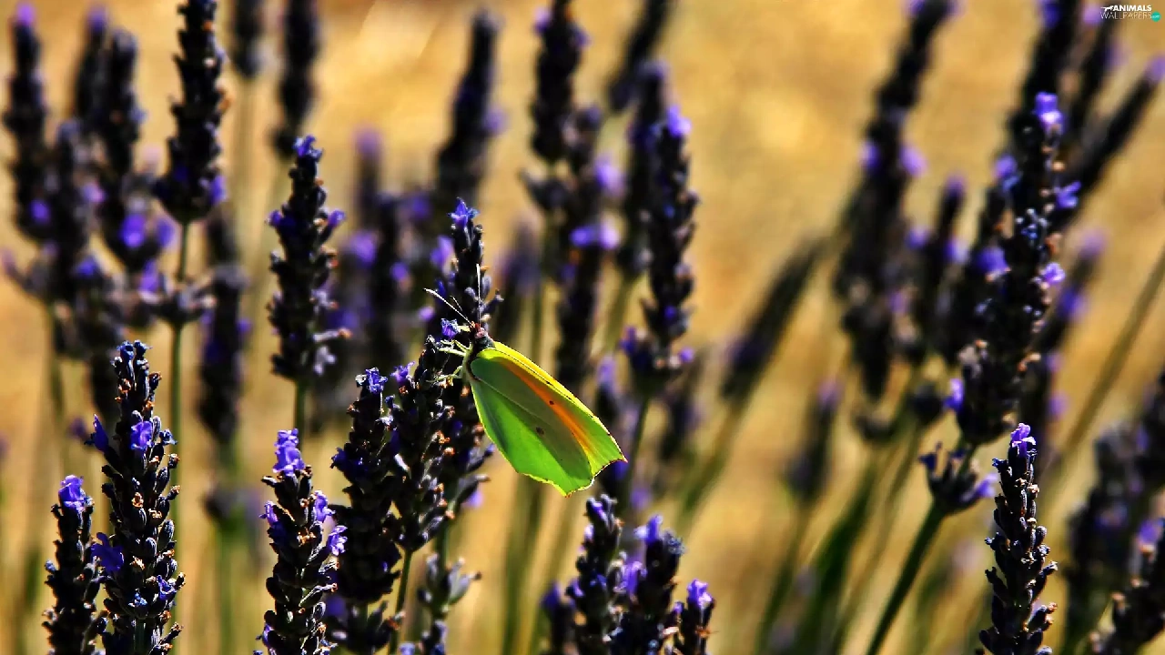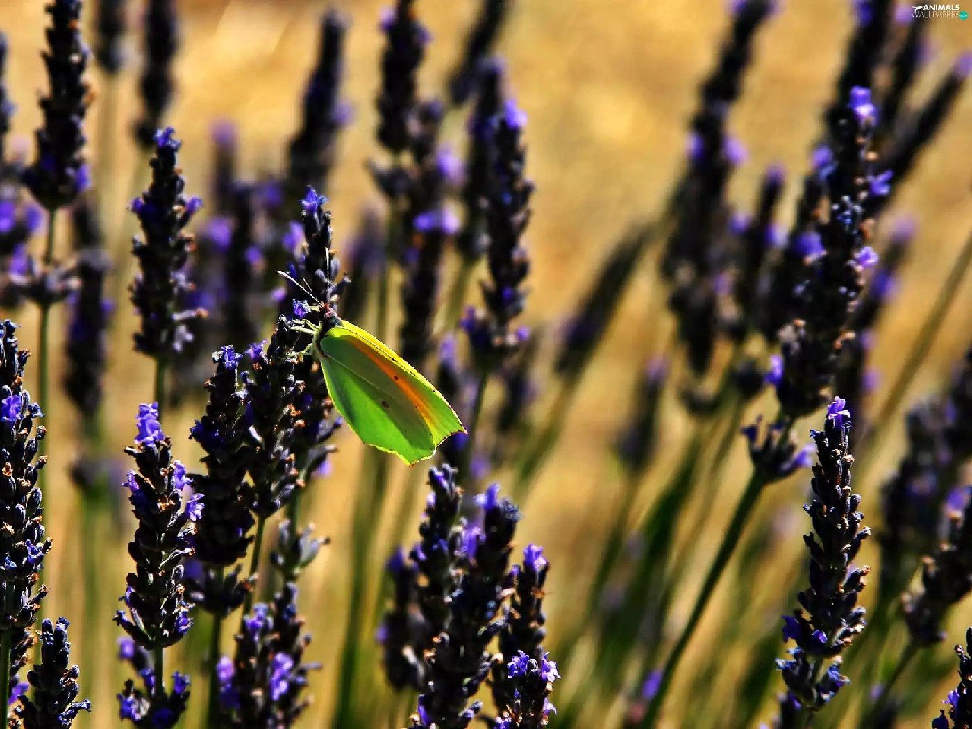 butterfly, blur, lavender, Green, Flowers